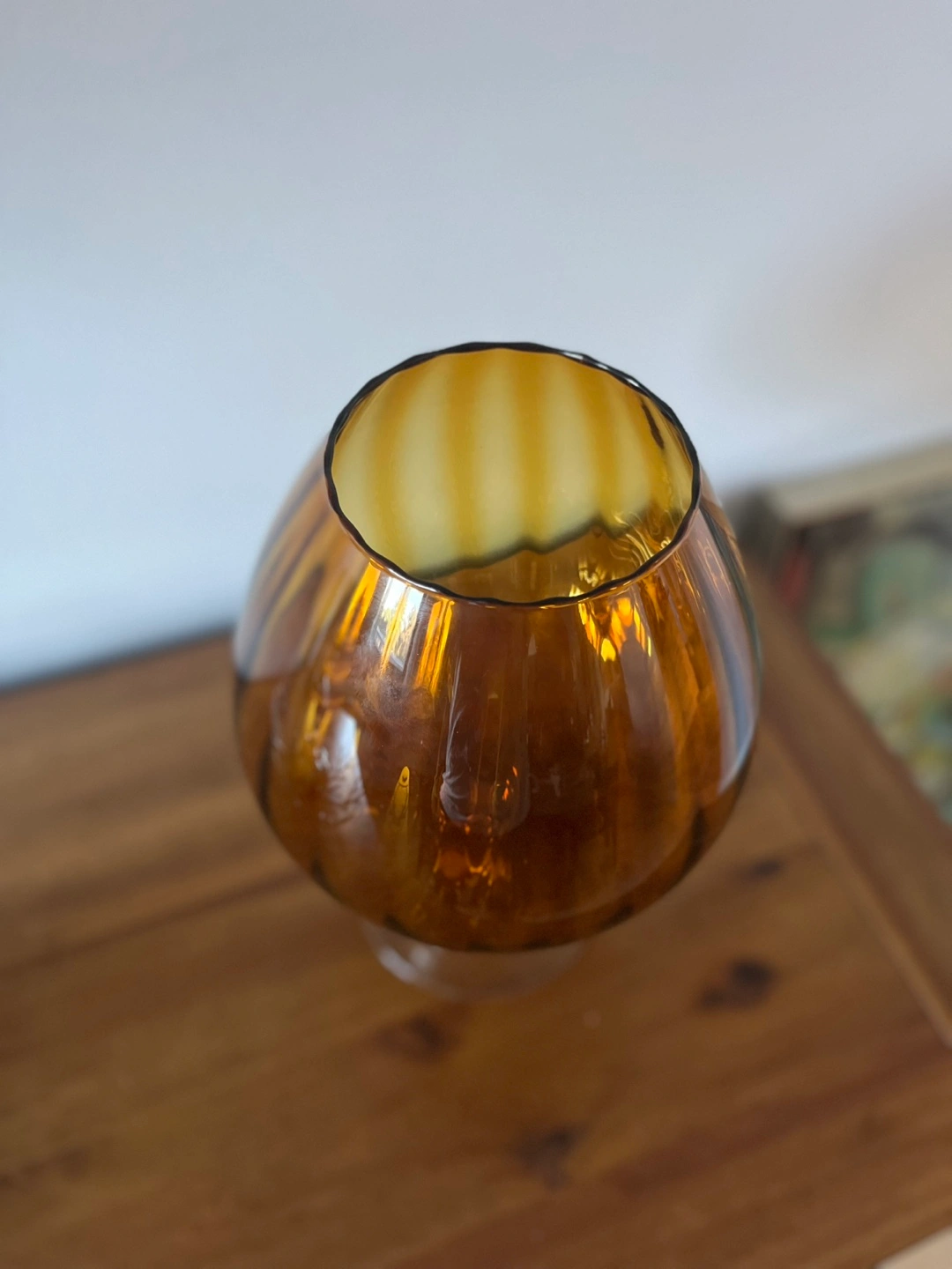 Vintage amber vase Super rare to see one so big and in tact Hand made