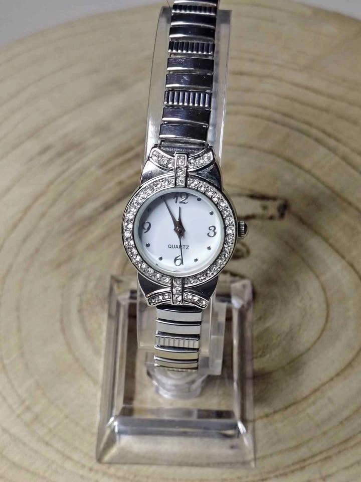 91Beautiful rhinestone encrusted women's stainless steel watch. Working condition, new battery. Will include a small watch box.