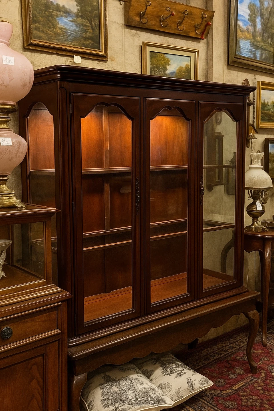62Beautiful solid wood display cabinet with built-in lighting. Perfect for showcasing collectibles, china, glassware, or any treasured items. ✨ Features: • Two glass doors with decorative trim • Glass side panels for full visibility • Built-in overhead lighting to highlight your items • Sturdy solid wood frame with rich finish • Elegant classic design • *Shelves not included* 📏 Dimensions: Height: 45” x Width: 53” x Depth: 14” Condition: Gently used, in excellent shape. A few minor signs of wear consistent with age, but overall very well maintained. Pickup only. Send me a message if interested!