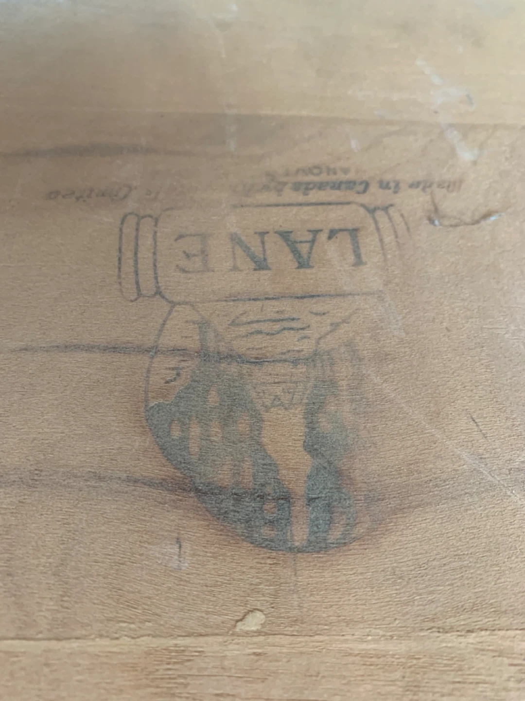 58Selling a unique mid-century modern side table with magazine rack storage. In overall good condition. Sturdy and level. Some signs of wear, see photos for details. Would restore well. Made in Canada. Manufacturer’s stamp on underside. Nutella jar for scale.