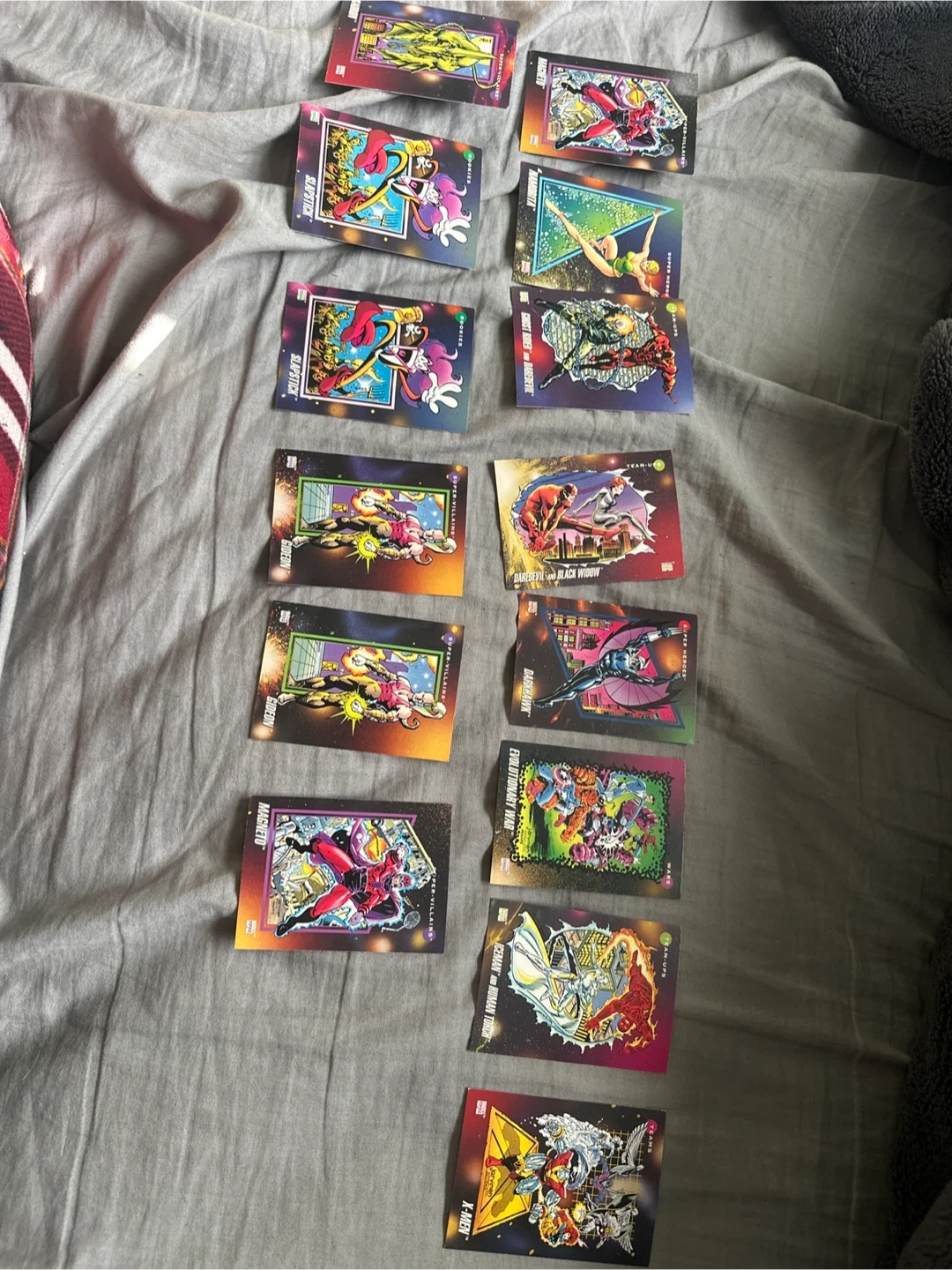 5Found these while cleaning out a crawl space for my grandma, turns out they’ve got a bit of value! They’re in excellent condition though none are a complete set but if this is your type of thing please let me know! This is my first listing on this app so if you have anything you need/want to ask please let me know. I also have some X-Men series one & two, that is a separate listing. If you want to buy a card individually please let me know and we can discuss cost. That’ll come in a card protector as I have a good few from my Pokémon cards.