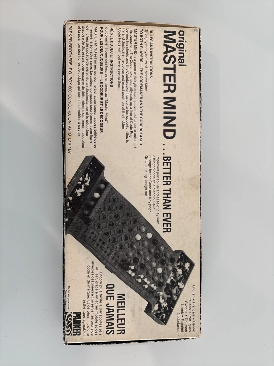 60Selling a vintage Mastermind board game by Parker Brothers! It's the classic code-breaking game, perfect for some old-school fun. The box is included, and it's in good condition for its age. Get ready to challenge your mind! Pickup Ambelton NW $10