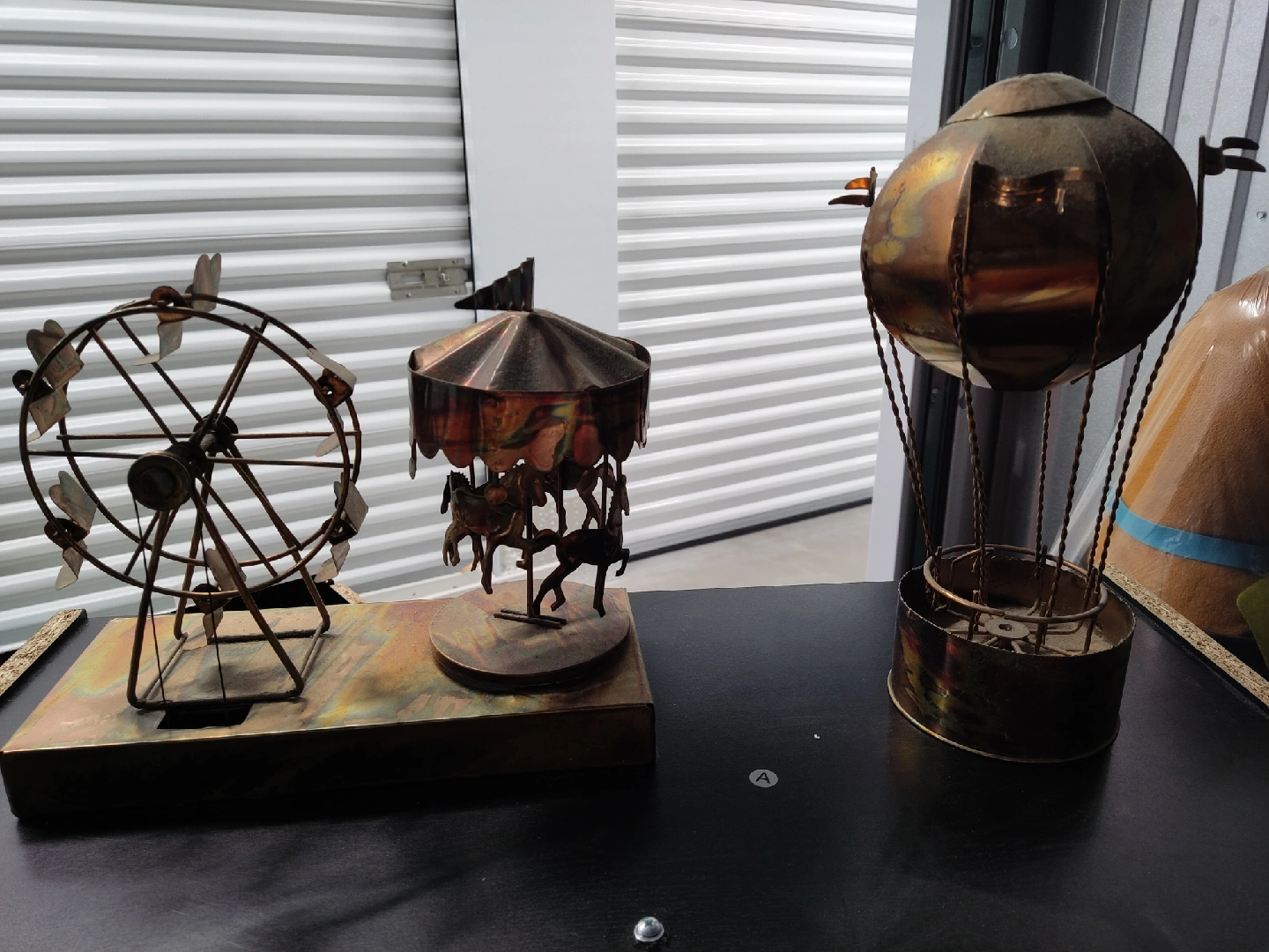 Selling a set of vintage metal carnival-themed decorations. The set includes a Ferris wheel, a carousel, and a hot air balloon. These items would be great for adding a touch of nostalgia to any room or collection $30 for carousel and hot air balloon $5 each for him ball machines