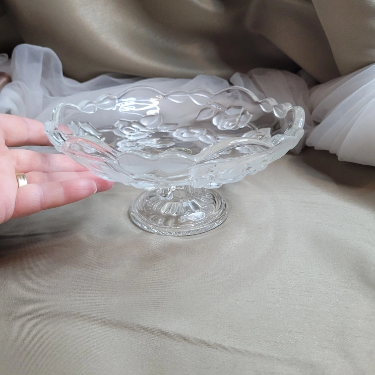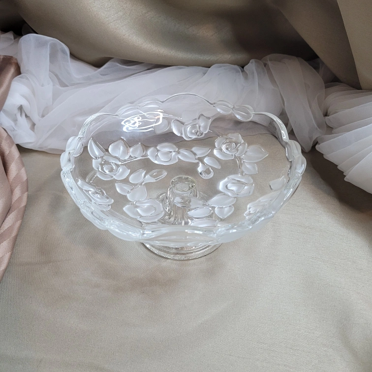 Vintage Mikasa Glass Pedestal Bowl - Frosted Rose - "Carmen" pattern 7" x 3 1/2" Excellent Condition please see all pictures Please See all my Other Listings, Bundle & Save for a Better Deal! Located in Bradford, May be able to Meet, Shipping Offered at Buyers Expense, Please contact me for more Info & to make arrangements, sorry no holds without an ET, Thank you so much for Looking!
