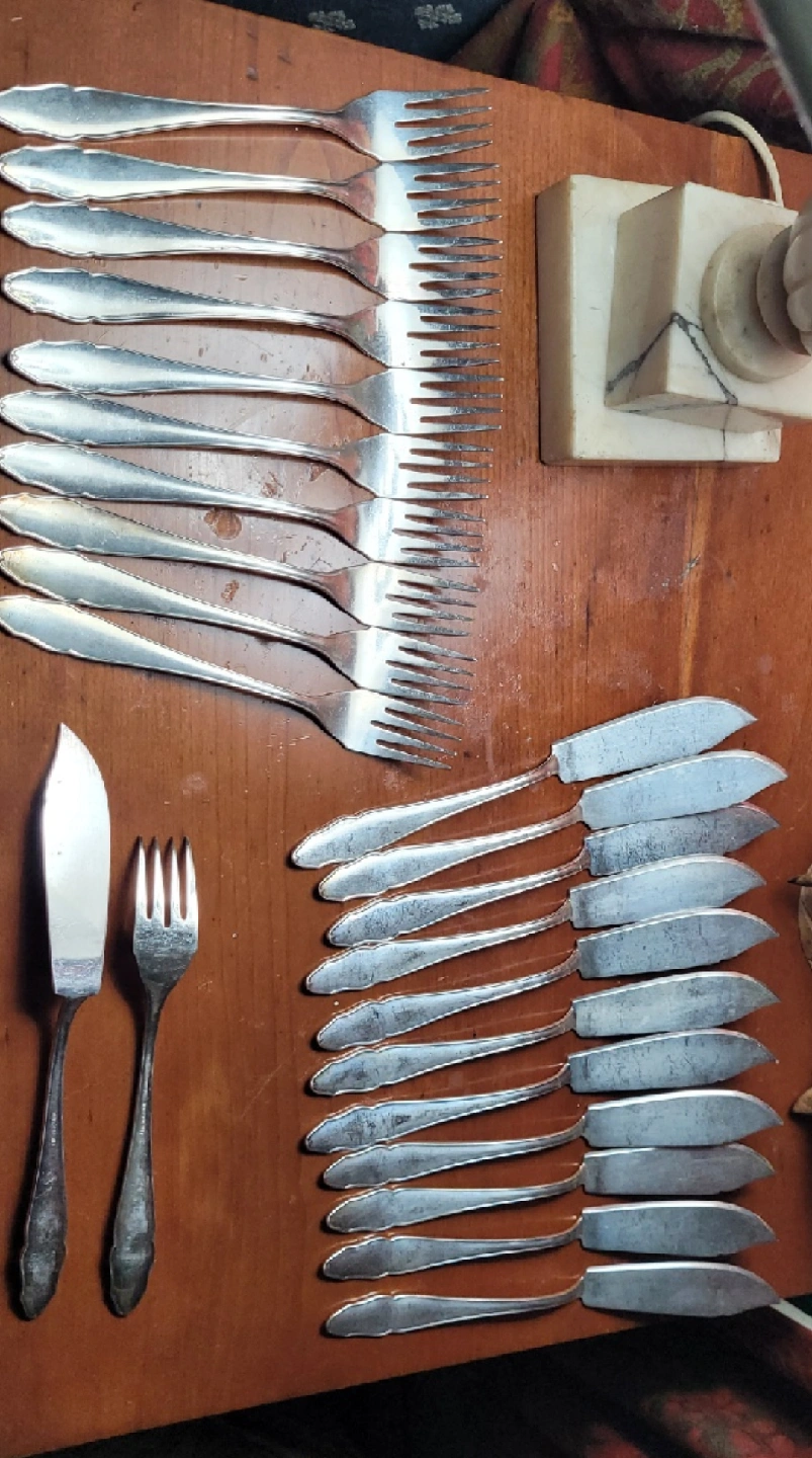 70Salem Selling a vintage Oneida Community Salem silverware set. Includes forks and knives. The silverware shows some signs of wear, which is common for vintage silver-plated items. The "A1" mark on the flatware indicates the quality of the silver plating 11 Of each, forks and knives