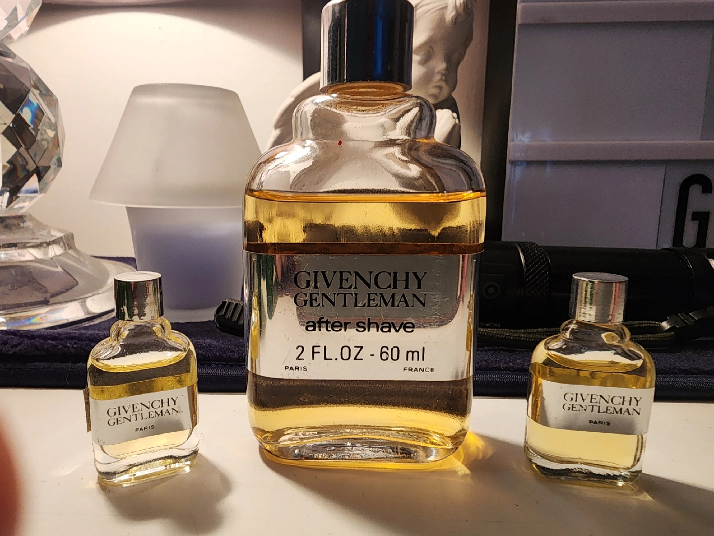 I am offering a set of Givenchy Gentleman aftershave, featuring a 2 fl.oz - 60 ml bottle and two smaller bottles. These aftershaves have a classic, masculine scent. The larger bottle is Slightly used, while the smaller bottles are full. * Classic masculine fragrance * Ideal for collectors or everyday use * Perfect for those who appreciate timeless scents If the ad is up, it's available! Don't miss out!