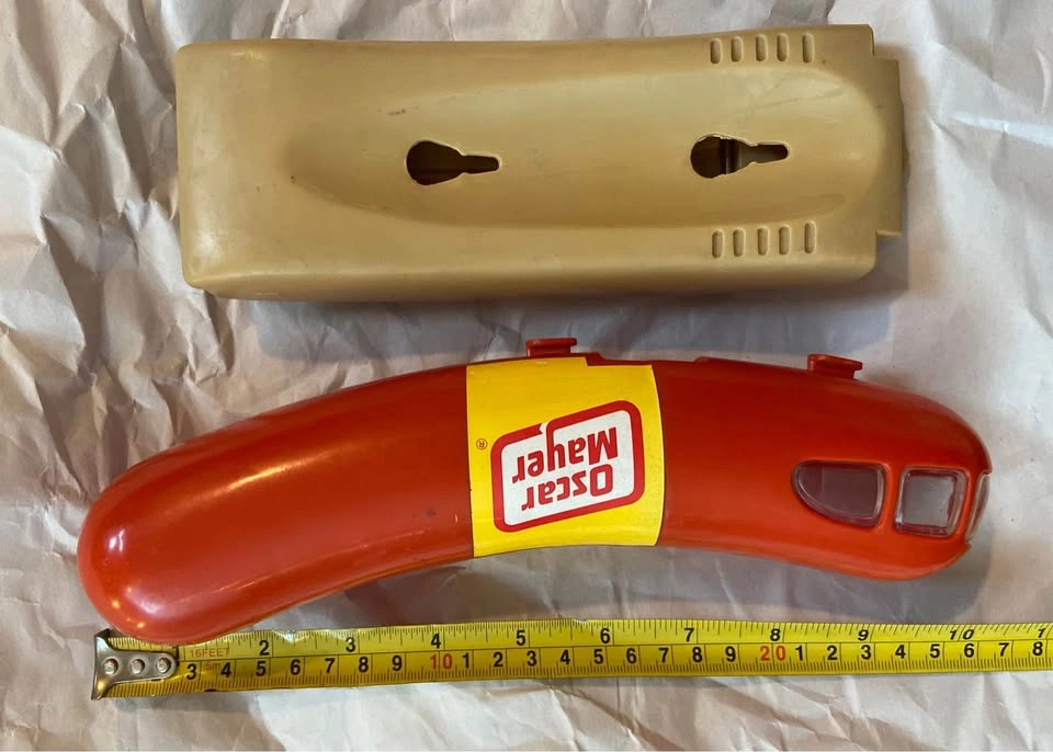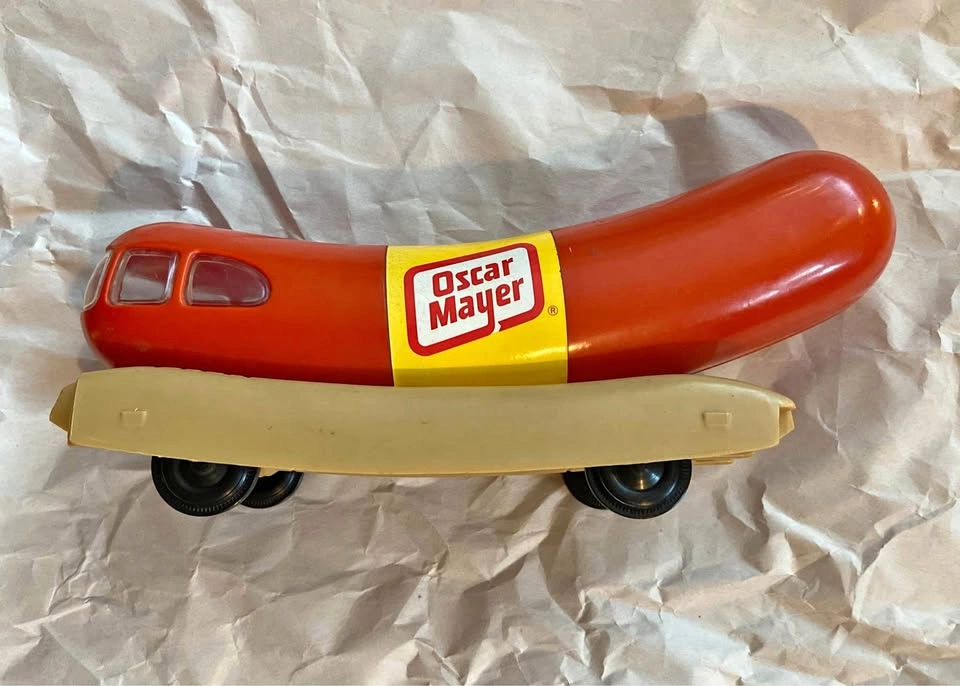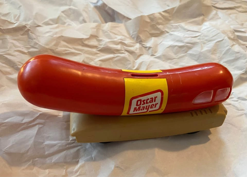 10Vintage 10” Oscar Mayer Wienermobile coin bank. Has some wear for how old it is but in good shape. Hotdog can be removed from base to retrieve coins. A must-have for any food and beverage advertising collector!