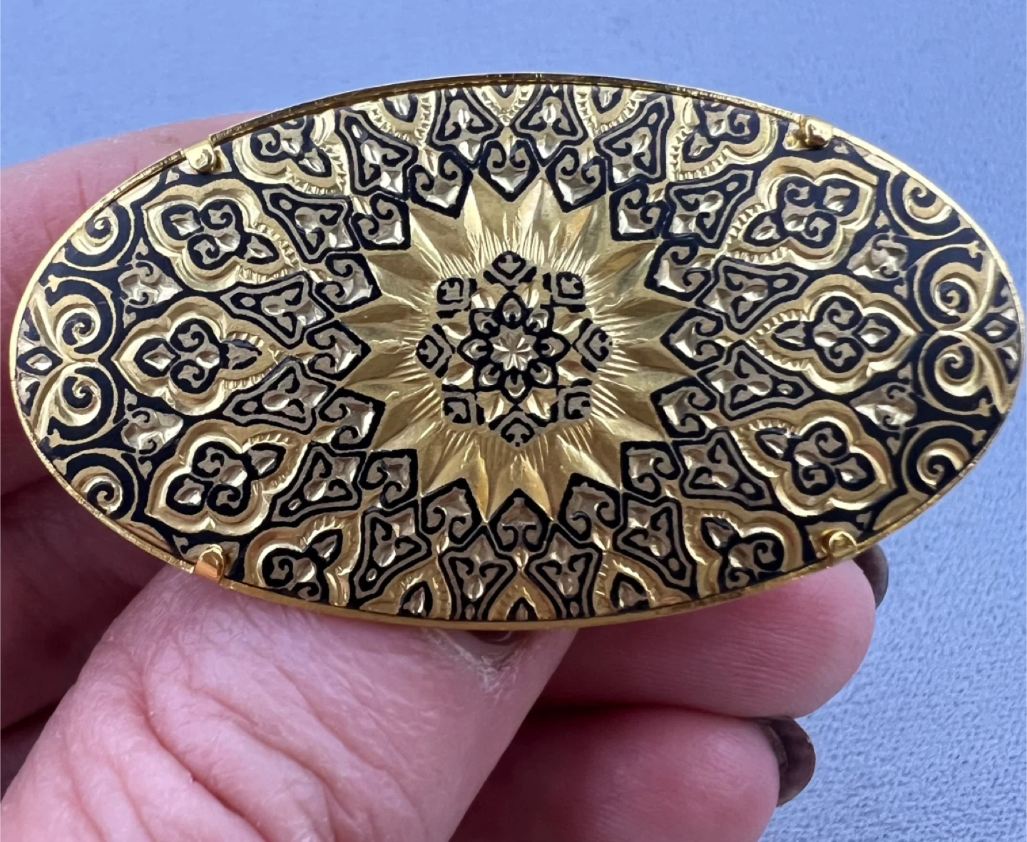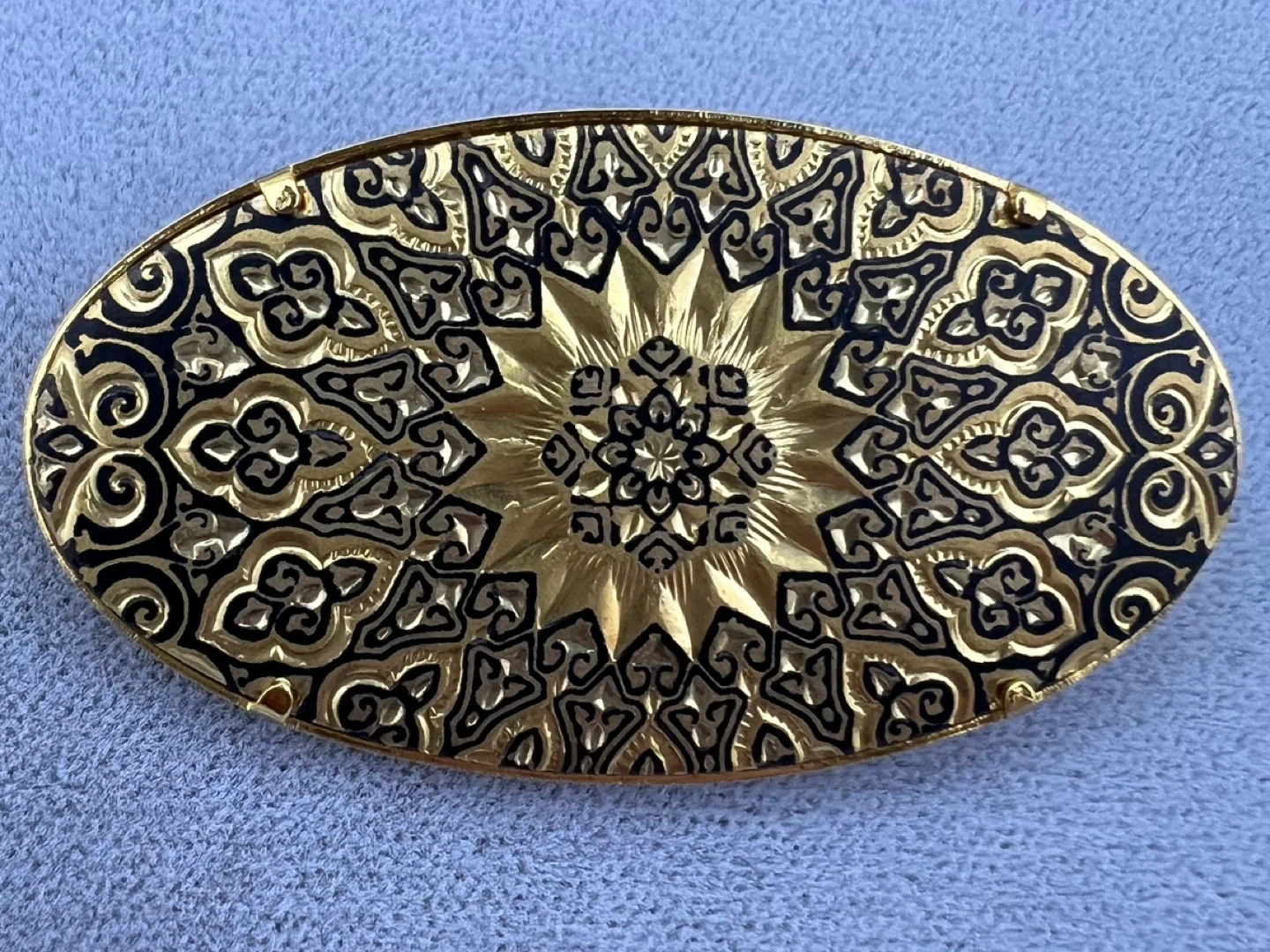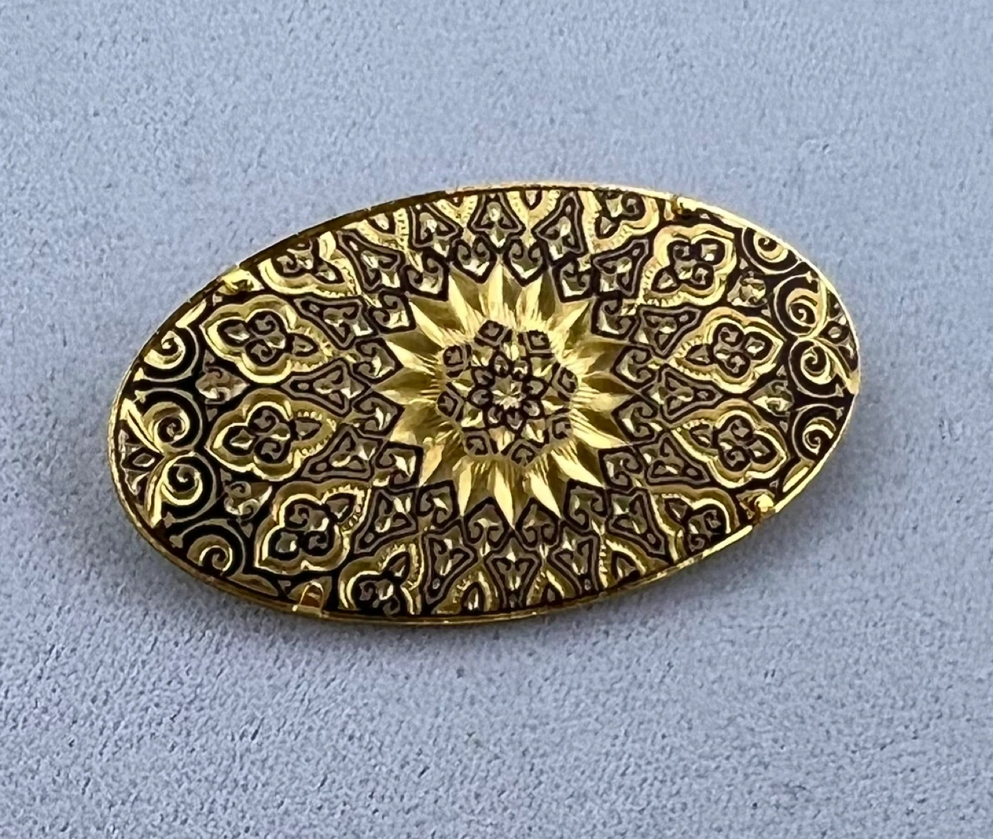 579Gold and black tone Pin closure Great vintage condition Approximately 2” long and 1” wide Brooches are back in style and this particular one deserves new life… Vintage jewelry revival!!! Asking $15 Interested? Message me and please check my other listings…