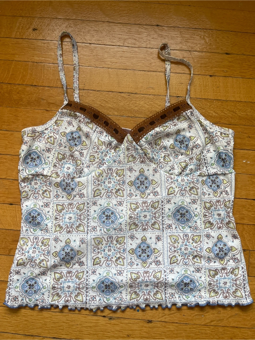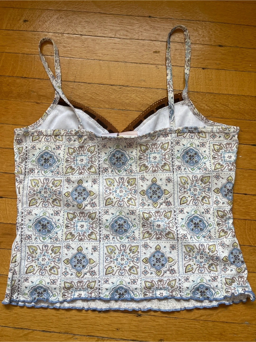 Cute vintage cami top with a unique patterned design. Perfect for layering or wearing on its own.