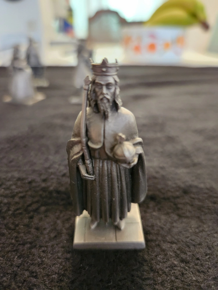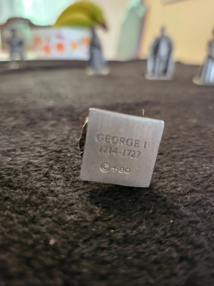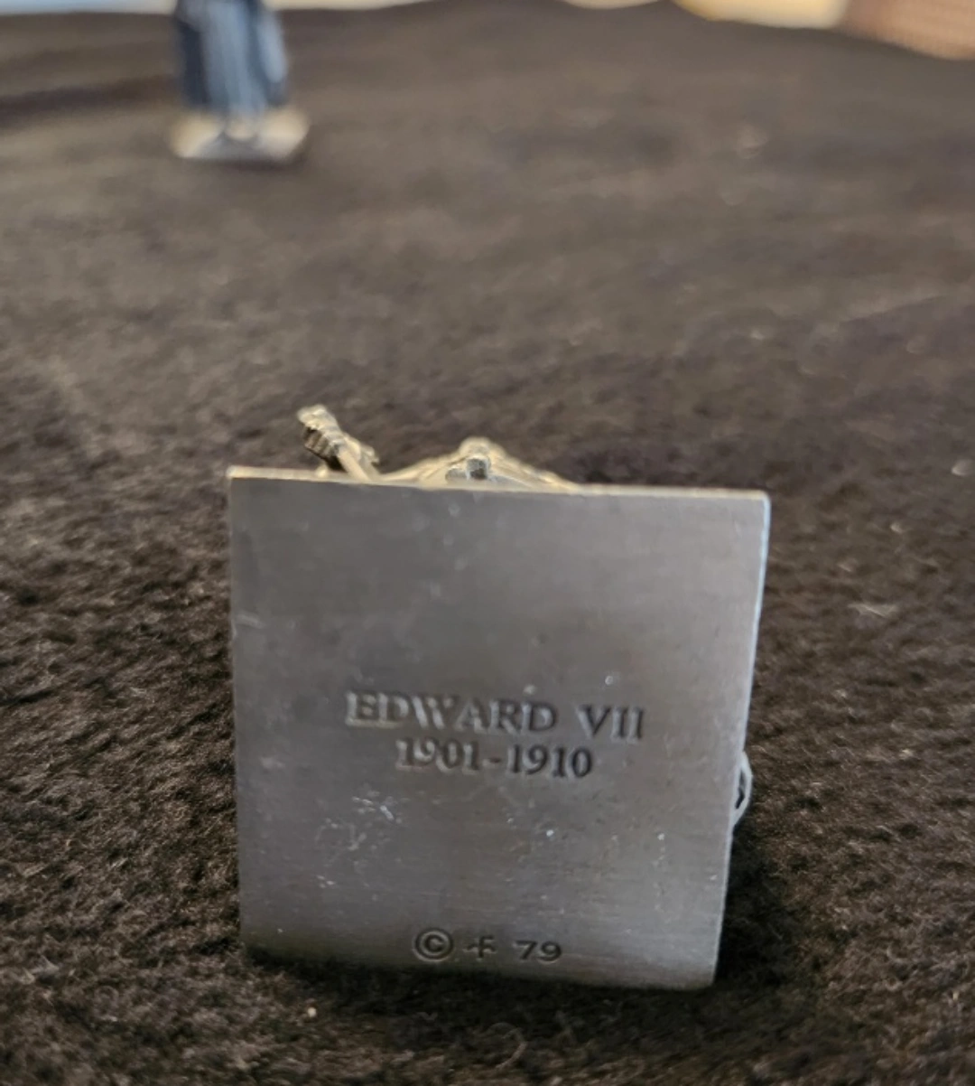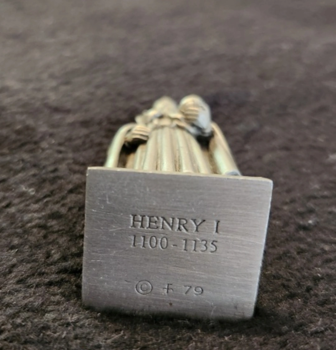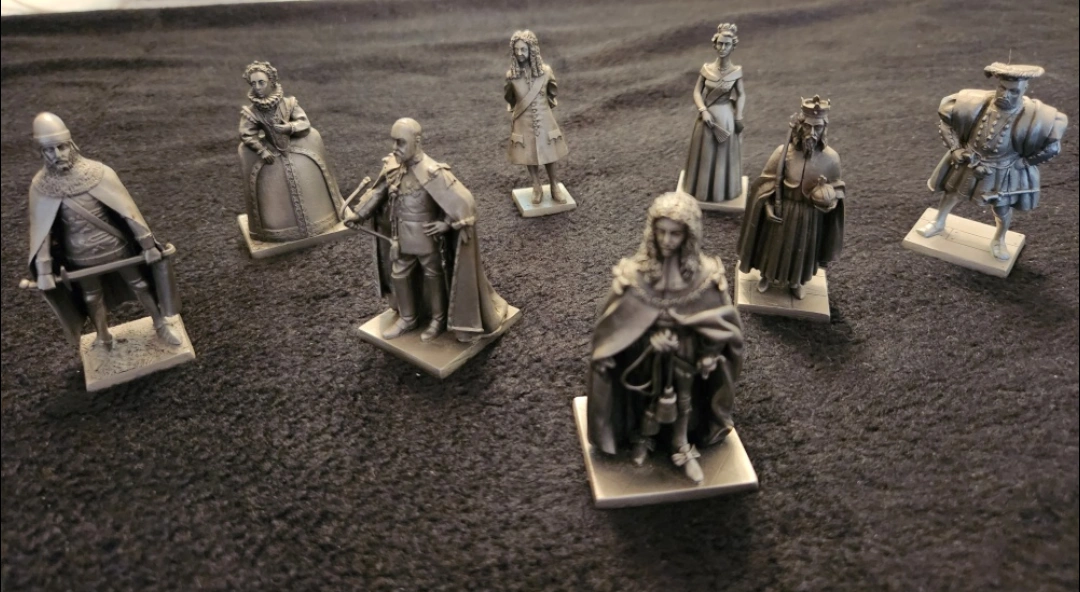 Selling a set of eight vintage pewter figurines depicting British monarchs. Each figure is marked with the monarch's name and reign dates (e.g., Edward VII 1901-1910, Henry I 1100-1135). A unique collectible item! Pick up at Bayview Village shopping mall