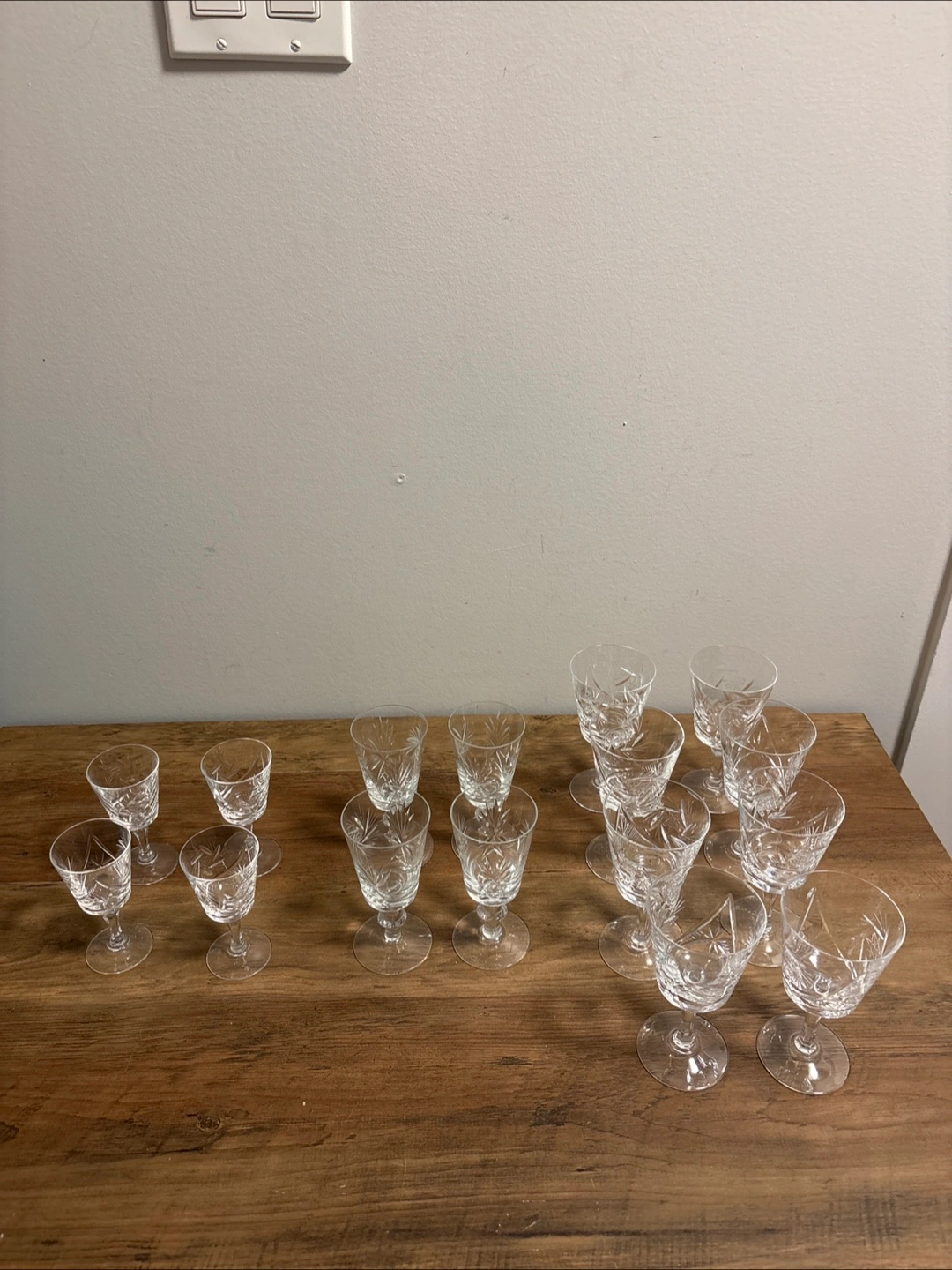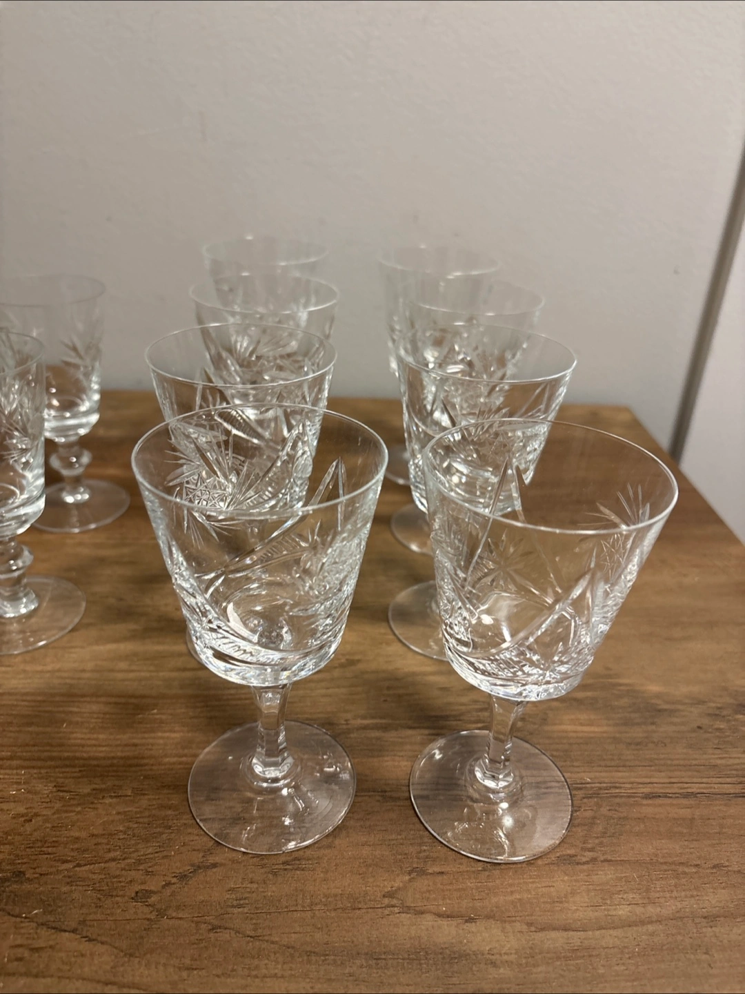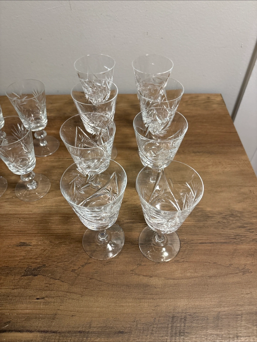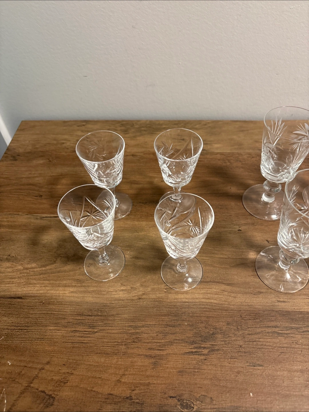 Selling a set of vintage pinwheels 18 crystal wine glasses. They feature a delicate starburst pattern. Perfect for adding a touch of elegance to your table setting! Each for $5 Make a reasonable offer please