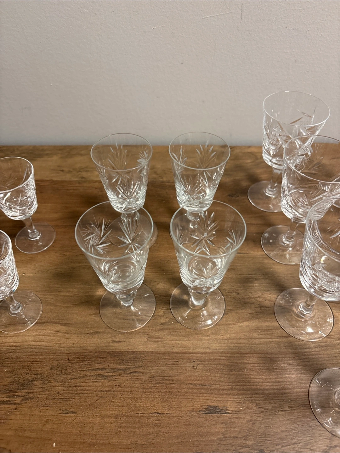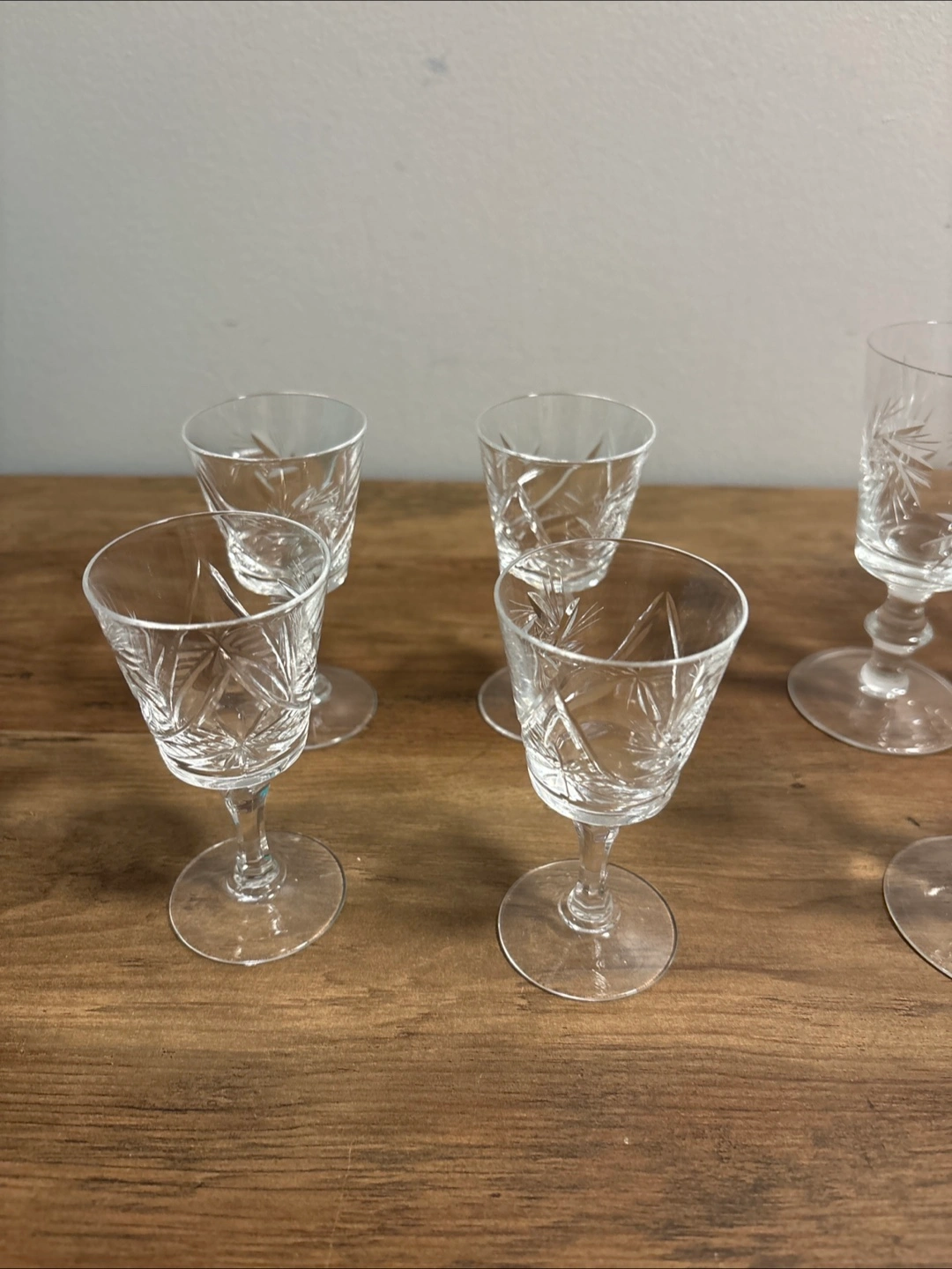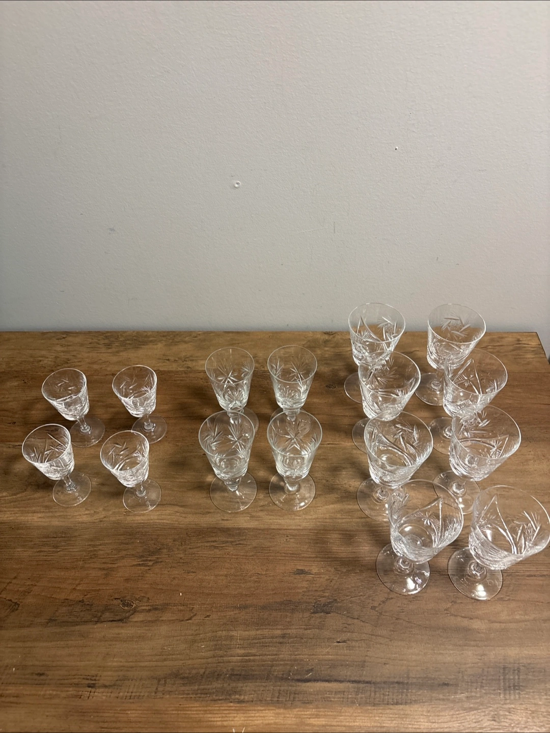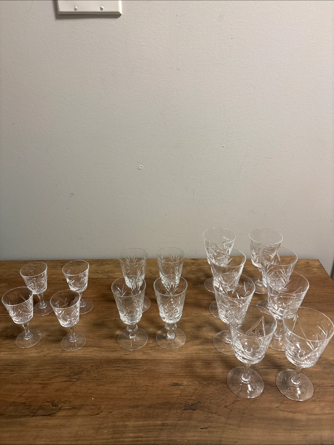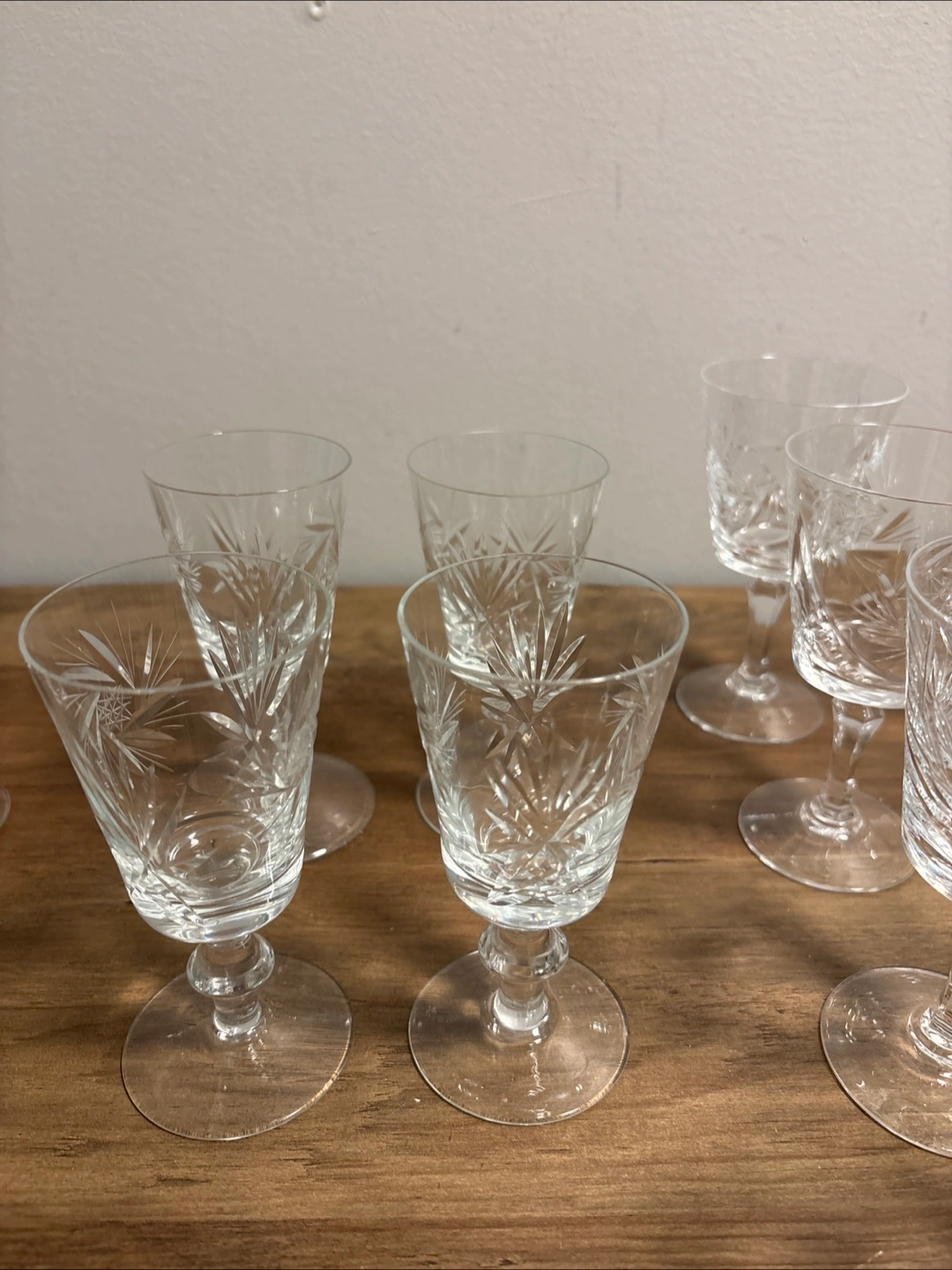 Selling a set of vintage pinwheels 18 crystal wine glasses. They feature a delicate starburst pattern. Perfect for adding a touch of elegance to your table setting! Each for $5 Make a reasonable offer please