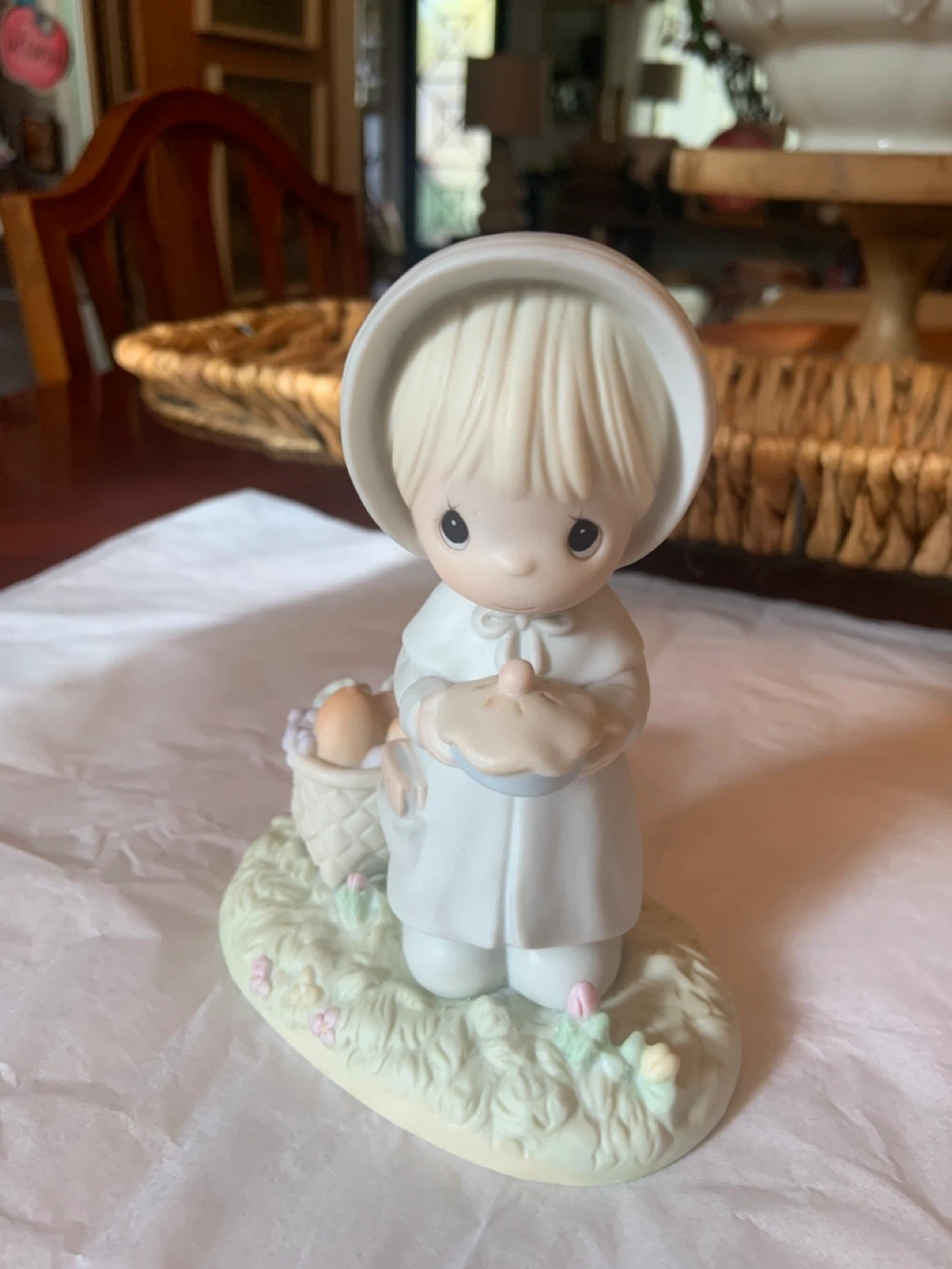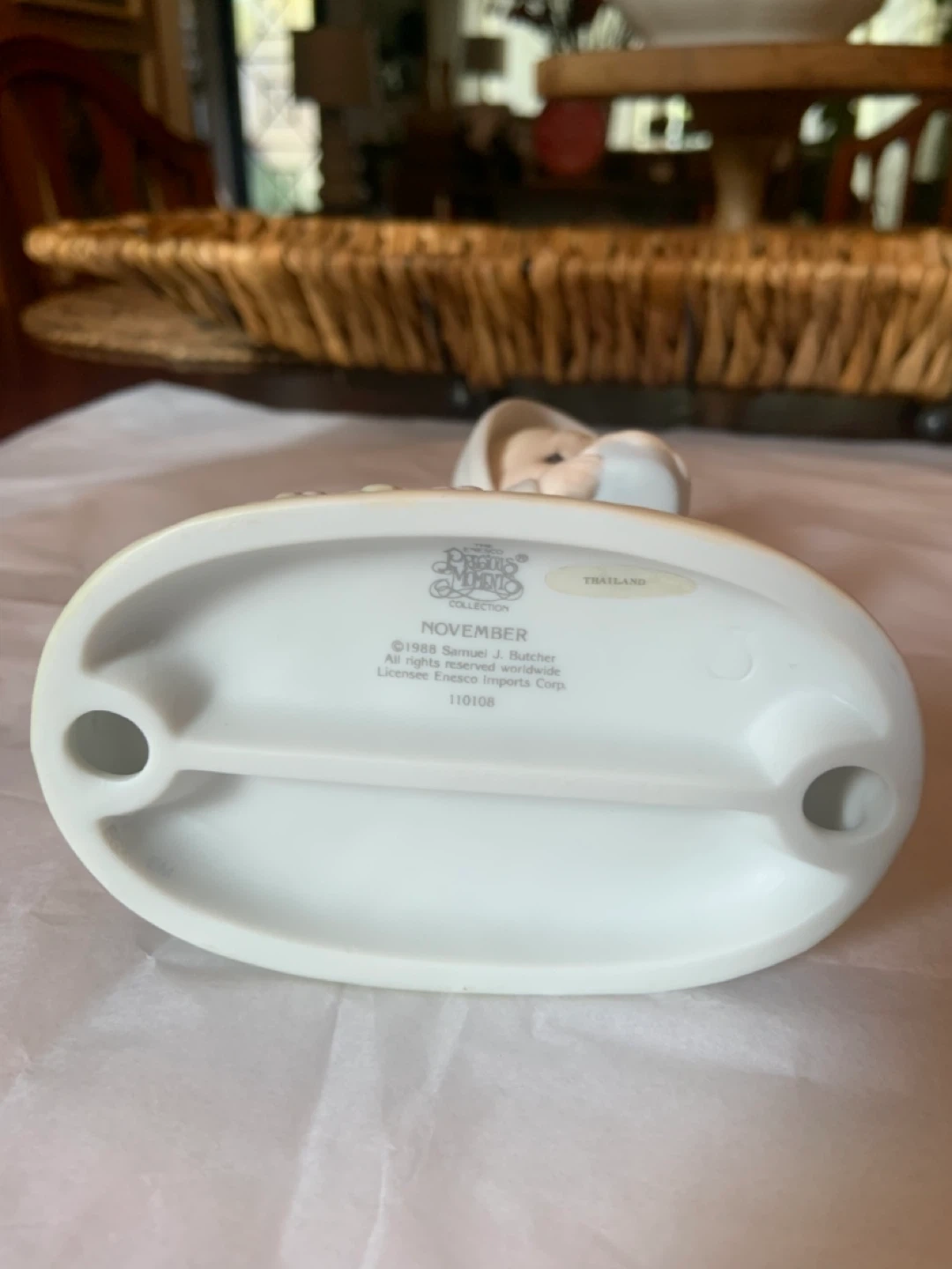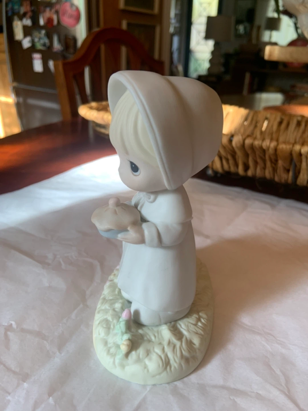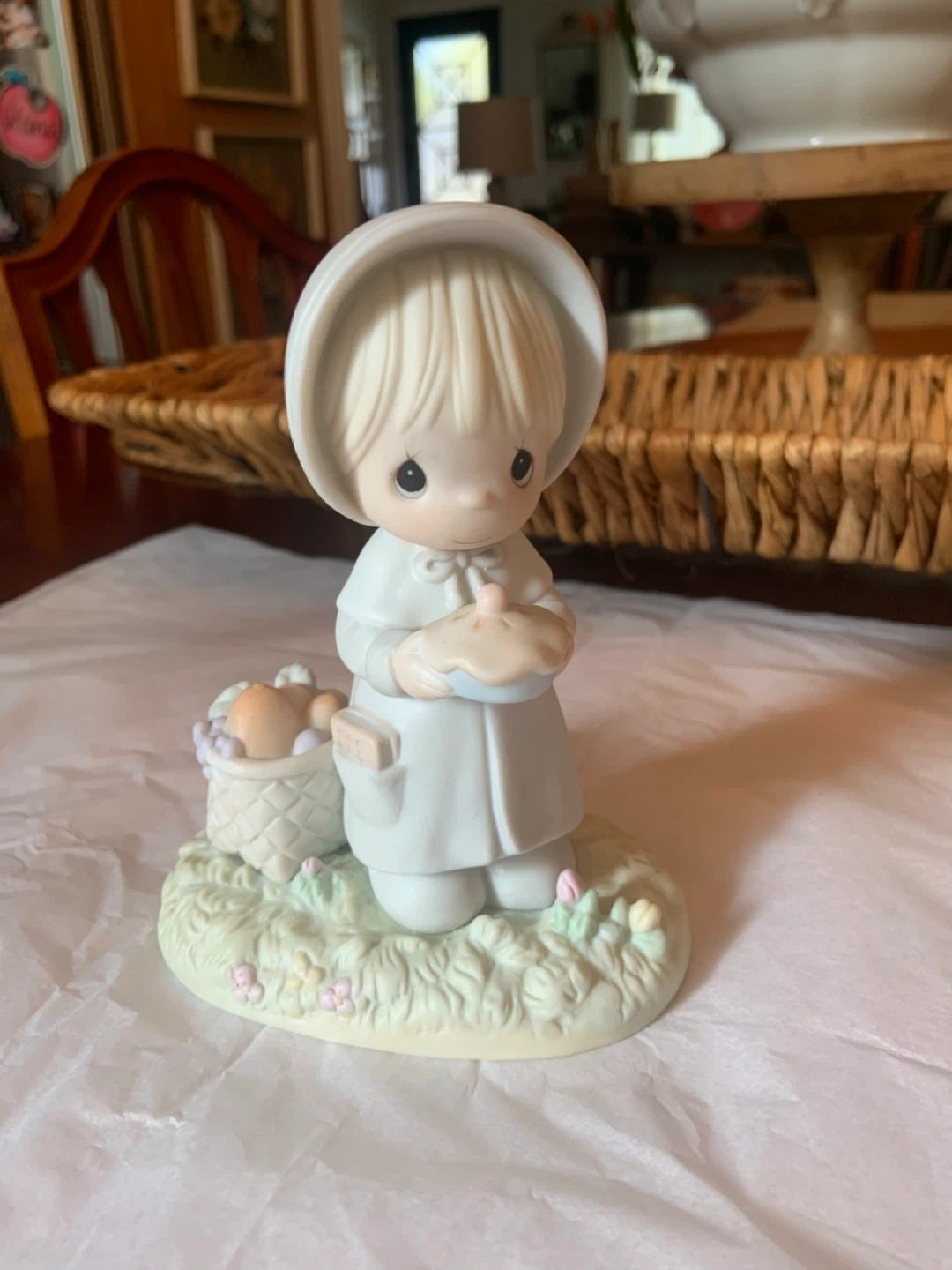 96• Main Intersections are HURONTARIO•STEELES just before downtown Brampton • This is a vintage Precious Moments "November" figurine • Model 110108, from the Calendar Girls series • Featuring a girl in a pilgrim outfit holding a pie and a basket of autumn bounty • NOVEMBER • 1988 Samuel J. Butcher • ENESCO IMPORTS CORP. • $25 • PEEL VILLAGE AREA A sweet Precious Moments figurine in excellent condition! This little girl is holding a pie and has a basket of eggs next to her. Perfect for collectors or as a charming decorative piece for your home