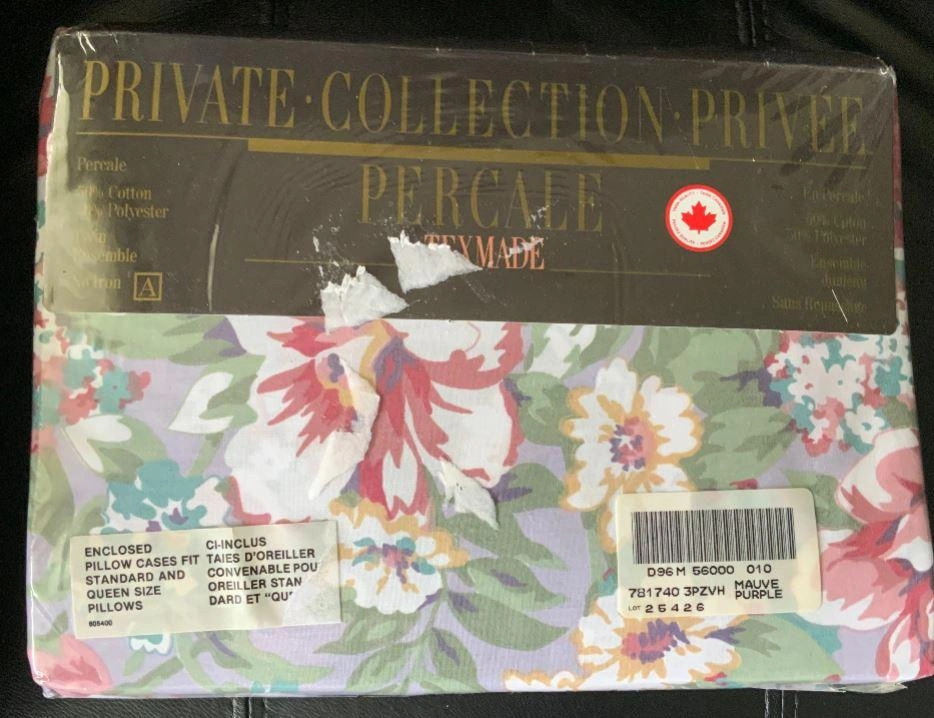 15The fine threads and vintage look of these wonderful Vintage Private Collection Percale Texmade twin bedsheets and pillowcase feature a wonderful flower based pattern that is pure vintage comfort. The 2 pillowcase set is decorated with an array of bright colors including pink, green, yellow and teal. Just a fantastic set of vintage pillowcases to add to your retro home décor. It will ad color, feel and a vintage look to your bedroom that will enhance the vibe and provide cozy comfort to your room. This listing is for one Private Collection Percale Texmade pillowcase and one twin bedsheet, new in their original package. Local pickup is in Etobicoke near Islington and The Westway. We offer shipping and local delivery for this item. Please send a message about availability and cost associated with these respective services. Alternately, if you wish to pay by credit card or Paypal and have it shipped, you can order it on our website by copying and pasting this link into your browser: https://hljathome.com/products/vintage-private-collection-percale-texmade-pillowcases