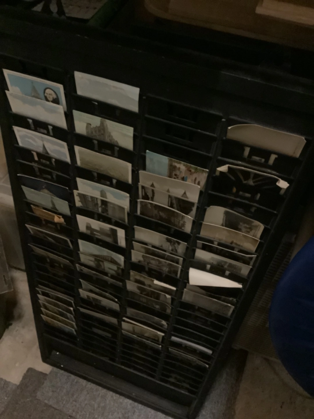 56Black metal wall mounting punchcard holder. 70s or earlier. Postcards not included. Pick up only. Cash only.