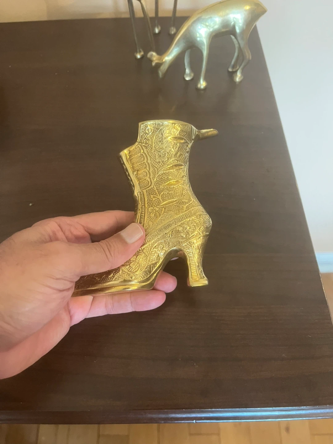 Purely petal Brass Check out this unique vintage golden boot ornament! It has beautiful detailing and would make a great addition to any collection or as a decorative piece in your home