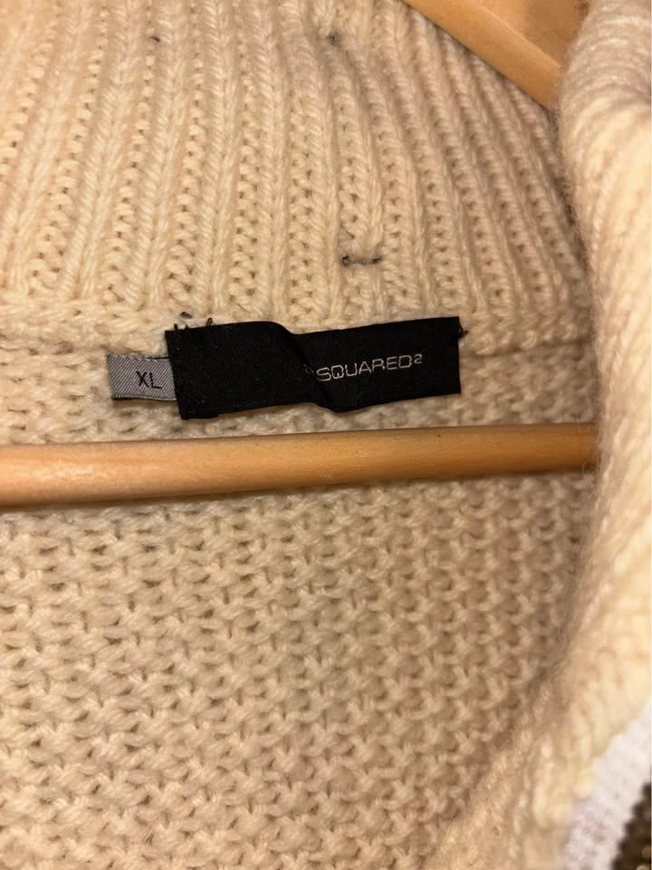 This authentic rare Dsquared2 sweater combines luxury and distinctive design, reflecting the brand’s unique aesthetic from the early 2000s made of Lana wool off center zip overall good condition no flaws