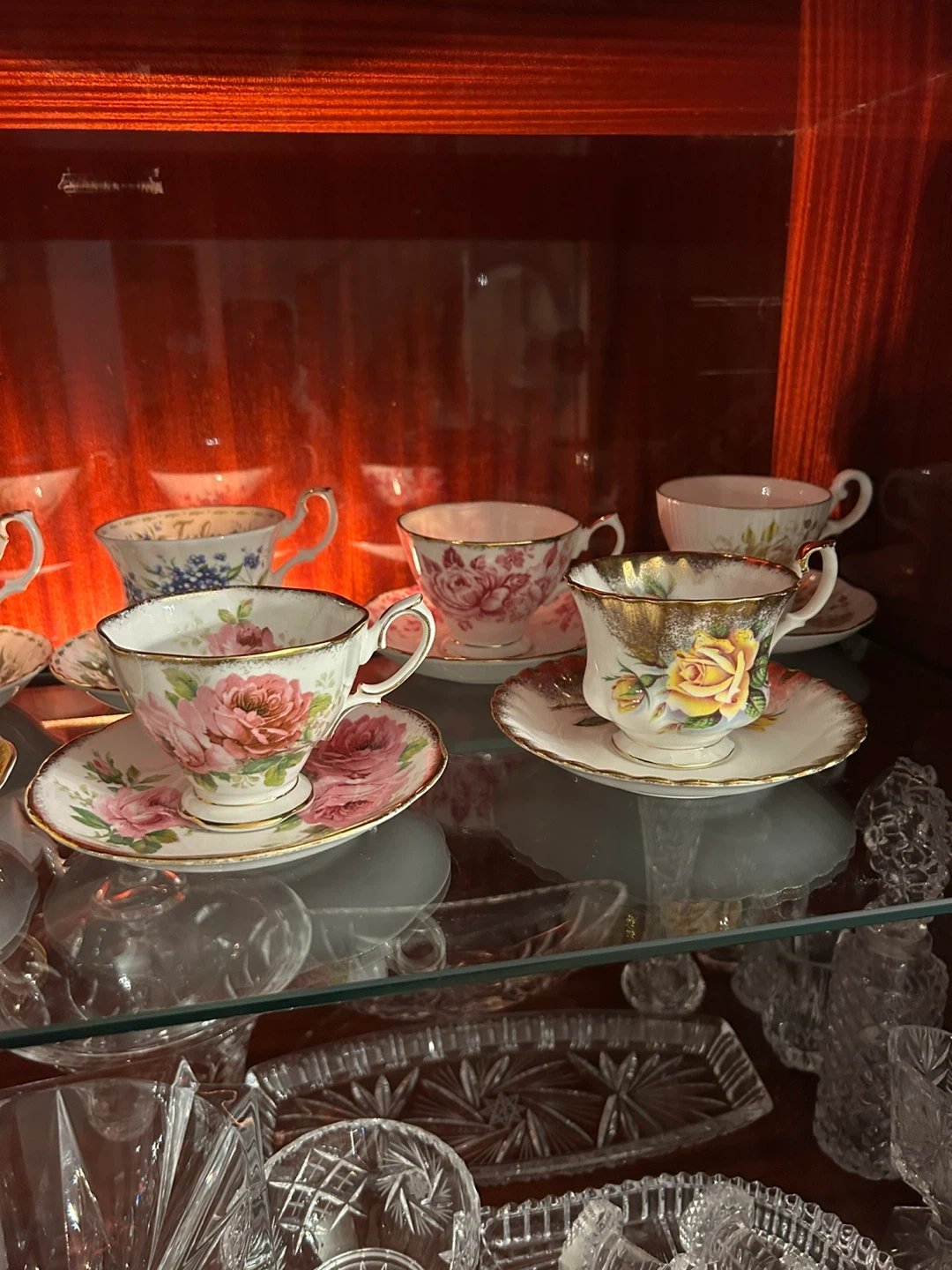 Selling a collection of Royal Albert teacups and saucers! Each set has a unique floral design and is perfect for adding a touch of elegance to your tea time. They are in great condition and ready for a new home. $35 for EACH set. You can get a very special discount if you buy them all.
