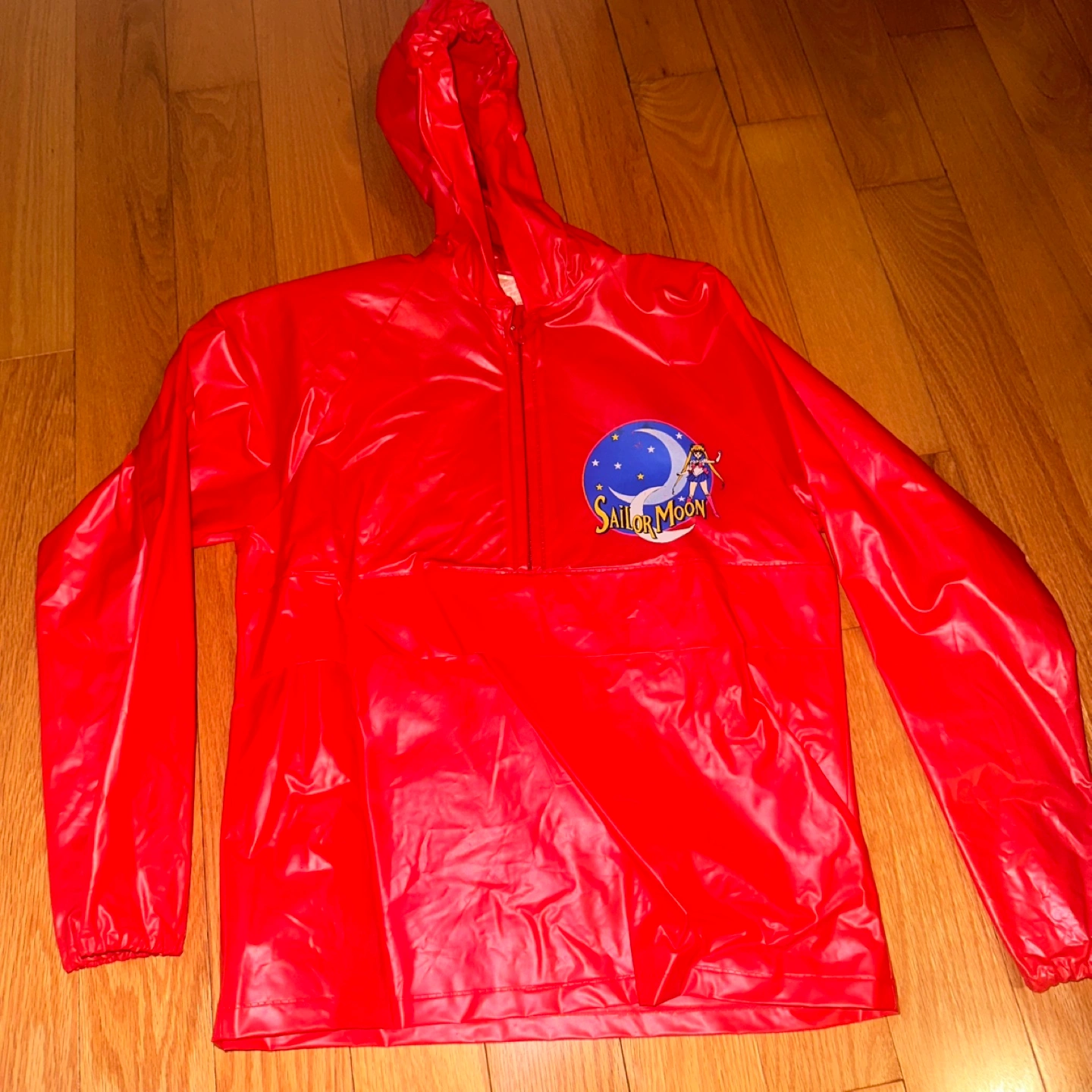 399Red hooded raincoat. Features Sailor Moon graphic on the front and back. Long sleeves, quarter zip closure. Great for rainy days and showing your love for Sailor Moon! Vintage collectors item, kids raincoat🐞✨ P2P: 18” Shoulder to sleeve: 25” Length: 23”