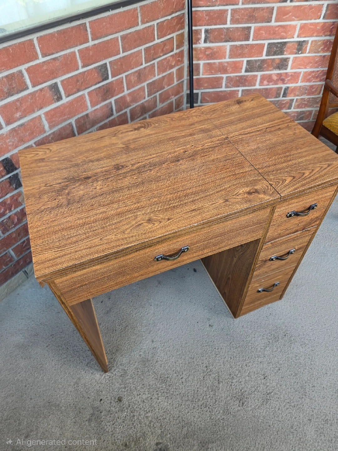 62Selling a vintage sewing desk/table. It's a beautiful piece of furniture that can be used as a desk or a sewing table. It has a fold-out top and several drawers for storage. Perfect for a crafter or anyone who appreciates vintage furniture!