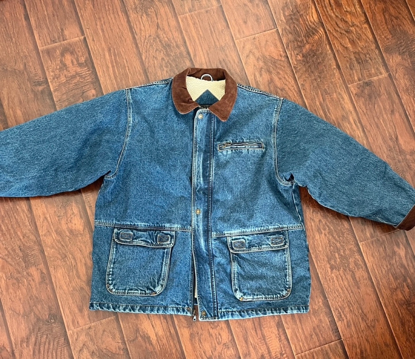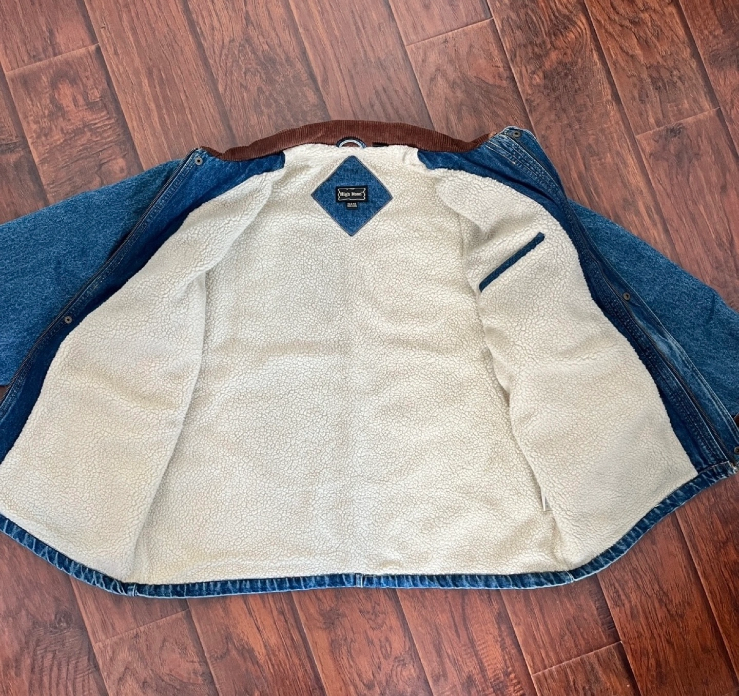 25Vintage High moon sherpa jacket Features a corduroy collar and multiple pockets.
