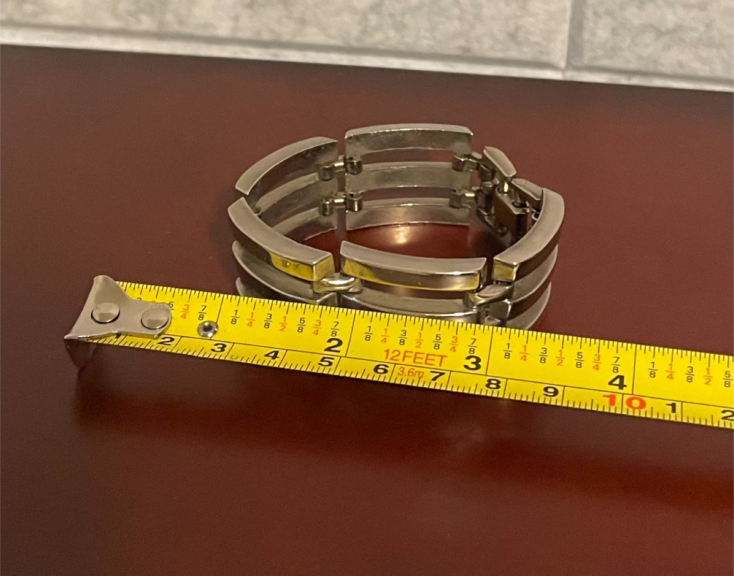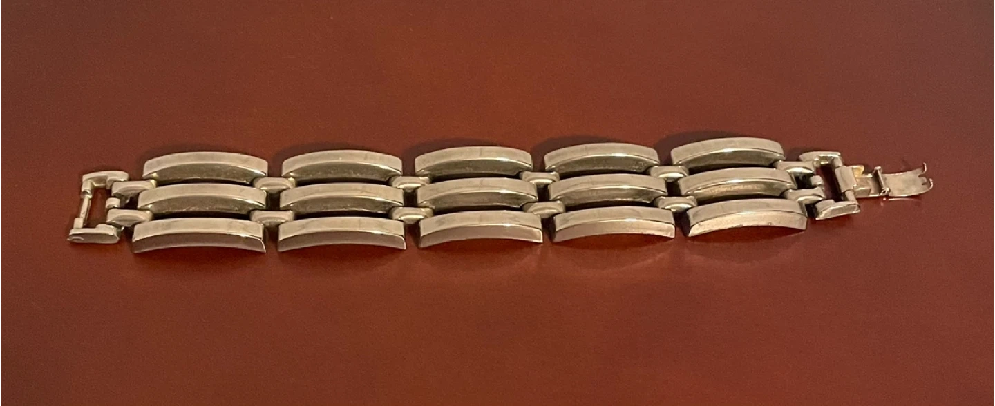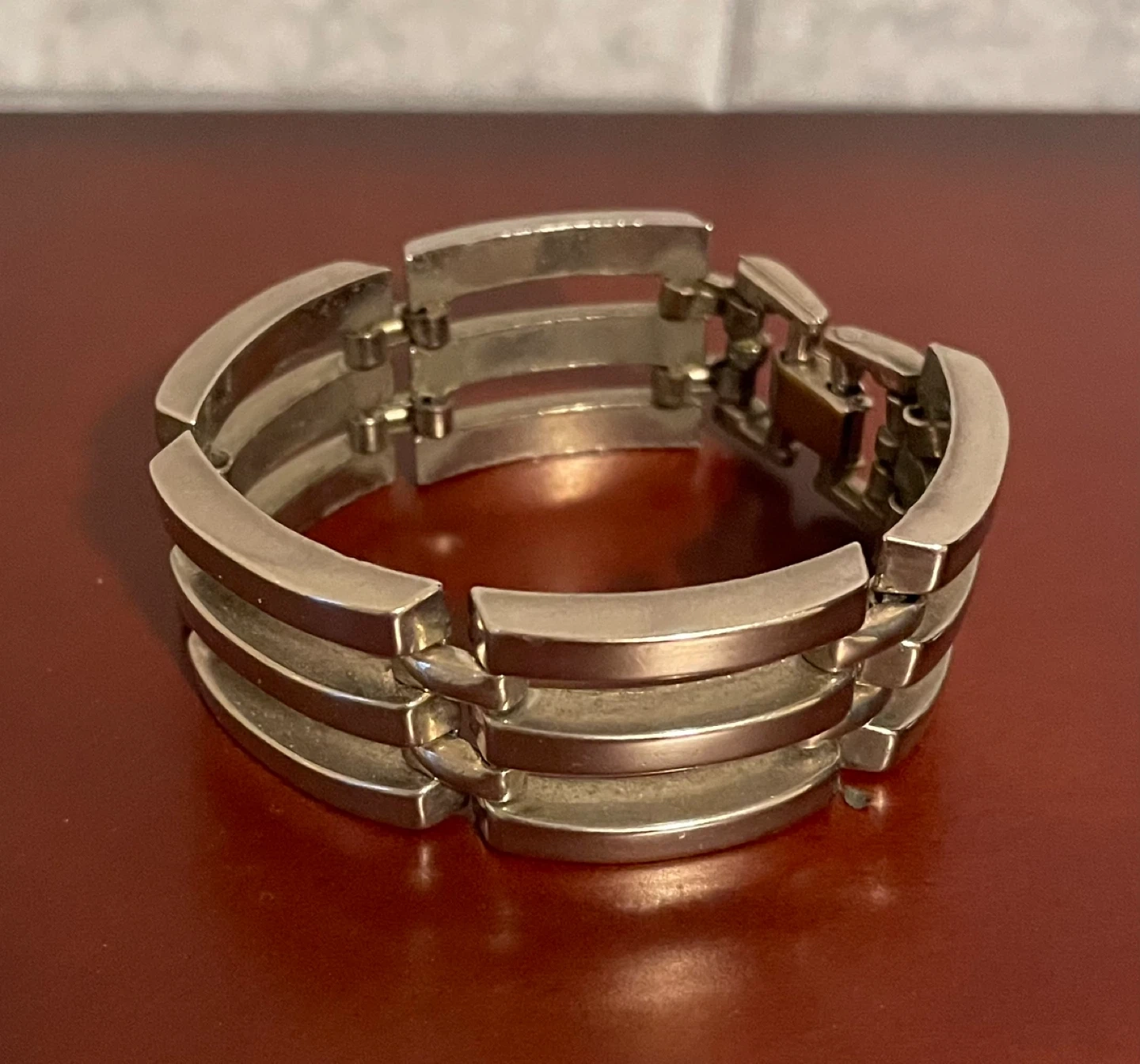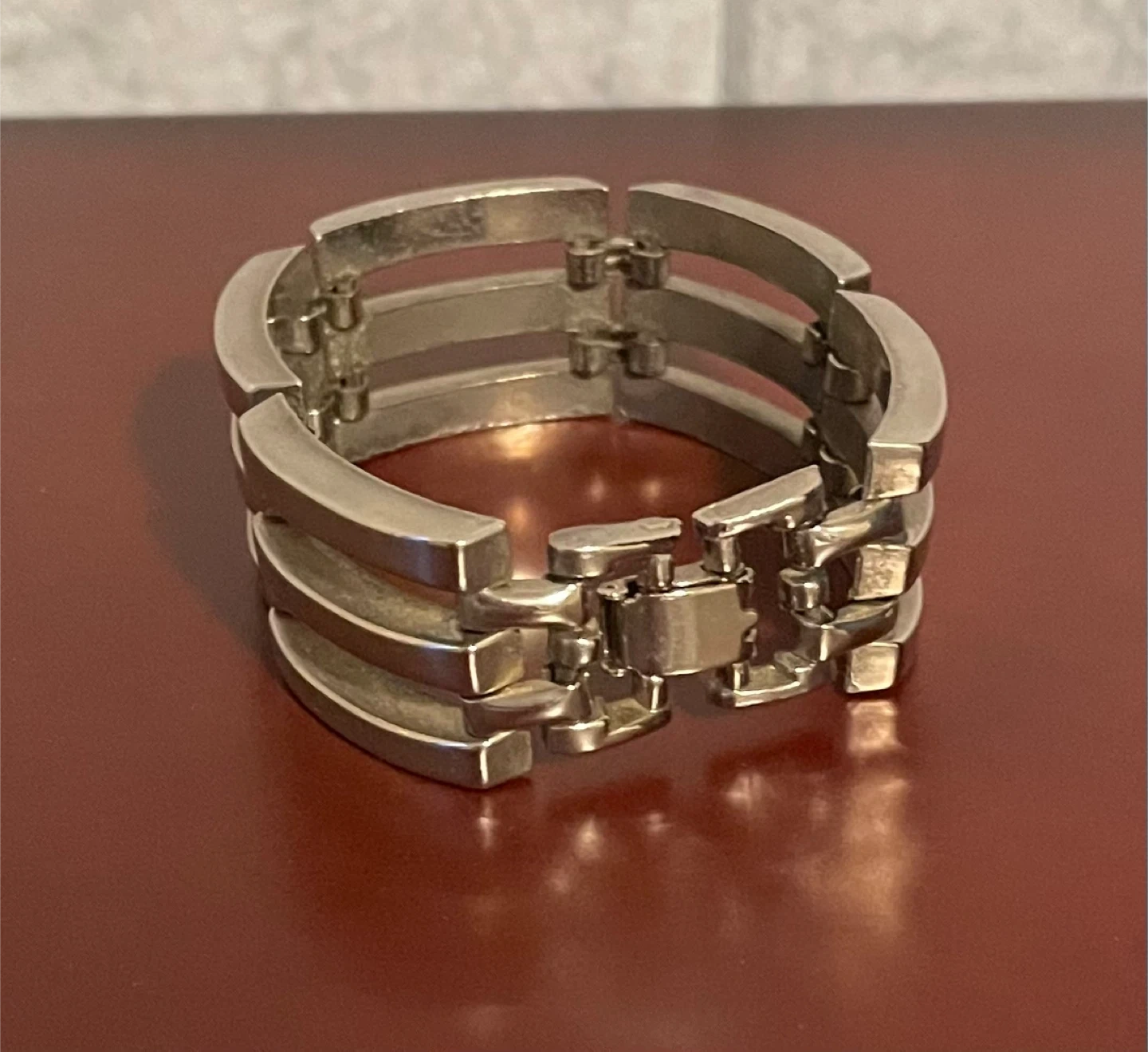 This vintage silver bracelet has a heavy link design. Unisex fashion from the 1960’s inherited from a relative.