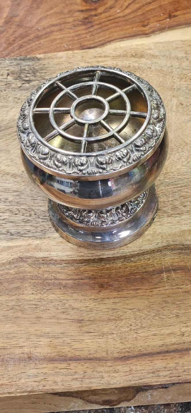 18Selling a vintage silver flower frog vase. It's in good condition and would make a lovely addition to any home!