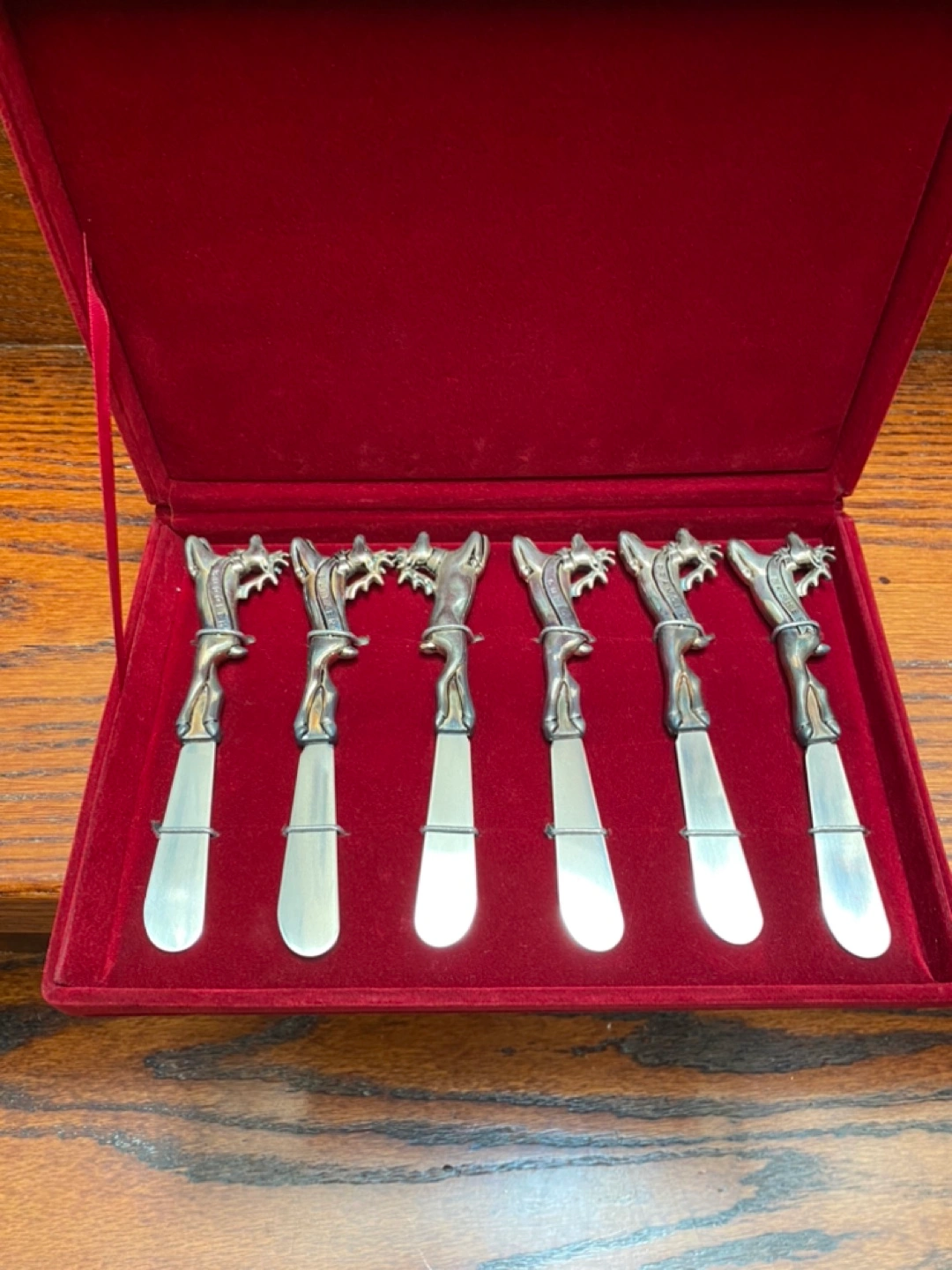 Vintage Silver-Plated Reindeer Butter Knives Set of Six