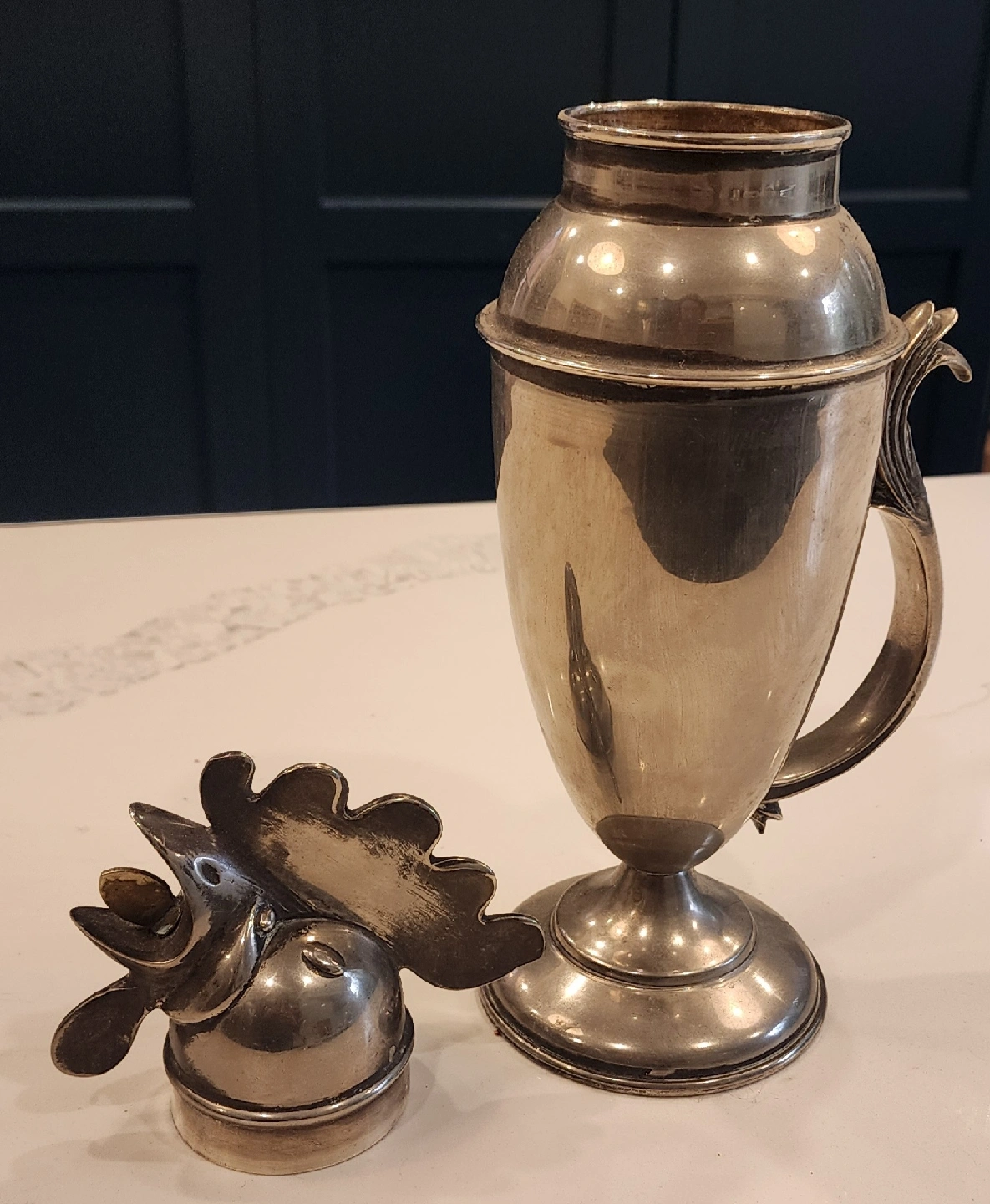 26Selling a unique vintage silver plated cocktail shaker from Restoration Hatdware! Removable tongue is fully functional. Inside is in perfect condition.