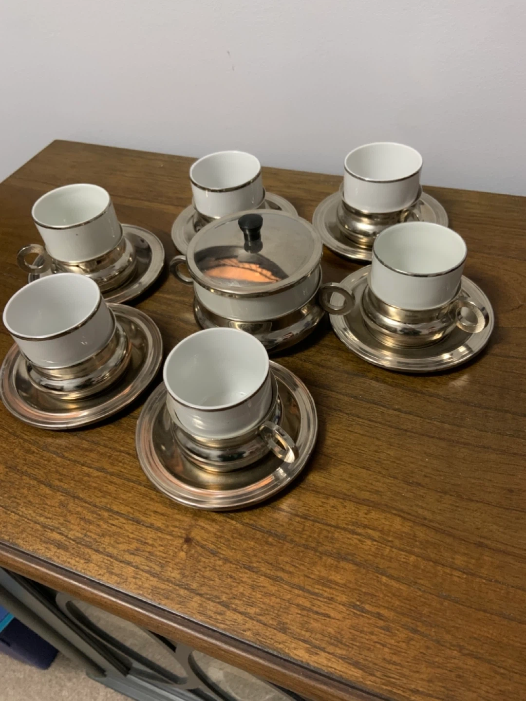 Vintage Silver & White espresso Set -12 Cups & Saucers