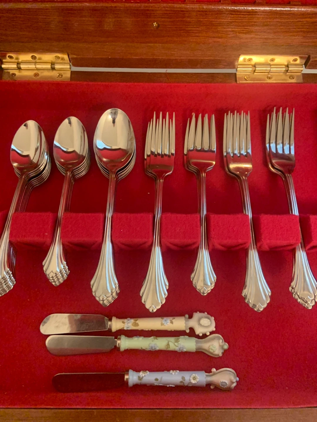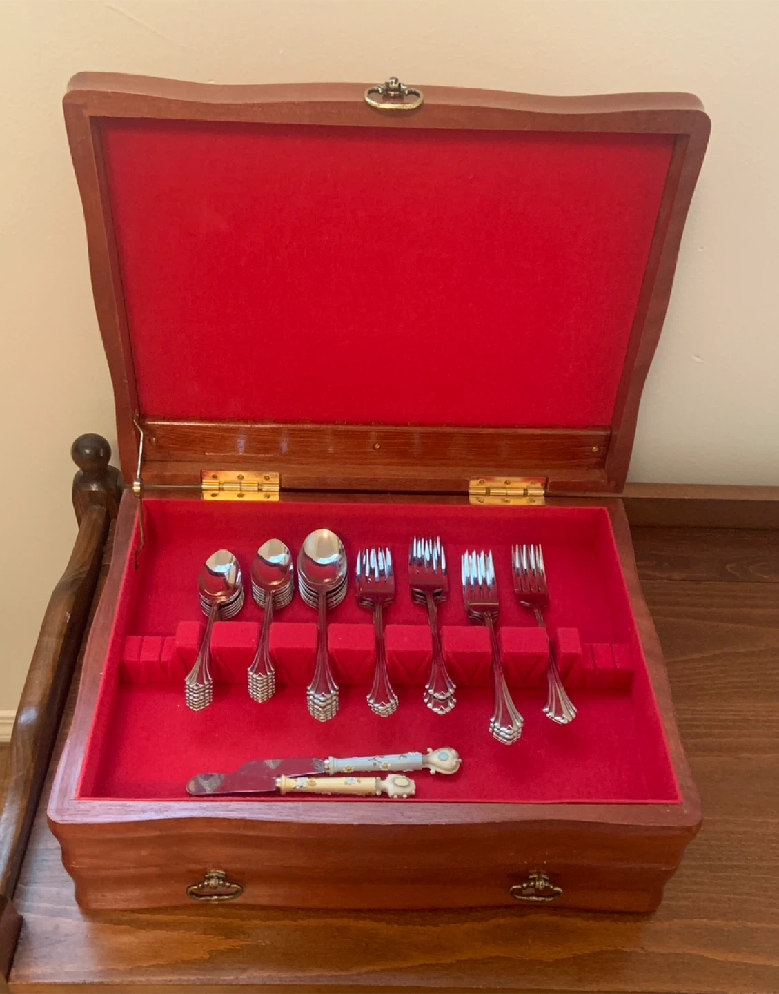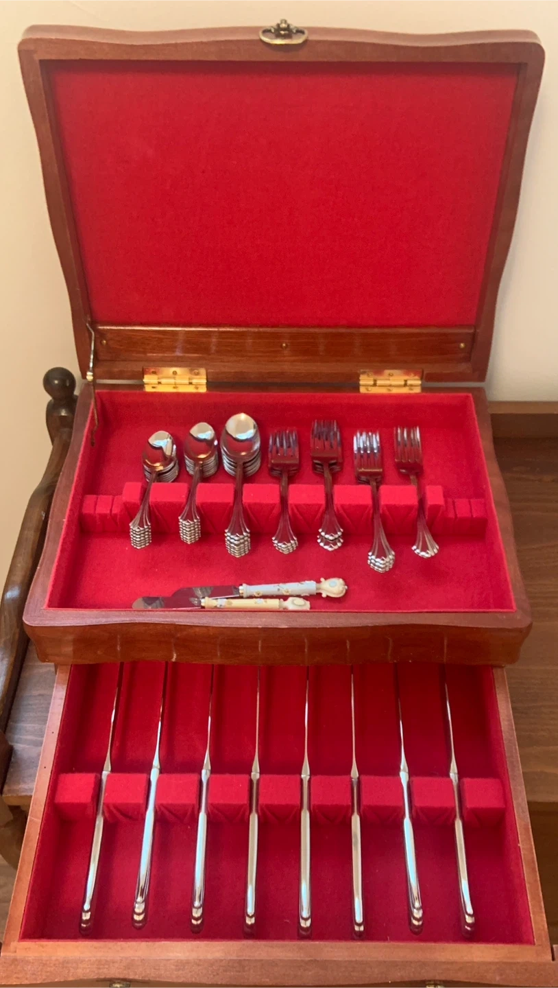 70Selling a vintage Oneida silverware set, complete with a lovely wooden case. It includes spoons, forks, knives, and spreaders. A beautiful addition to any dining collection. Pick up in Leduc