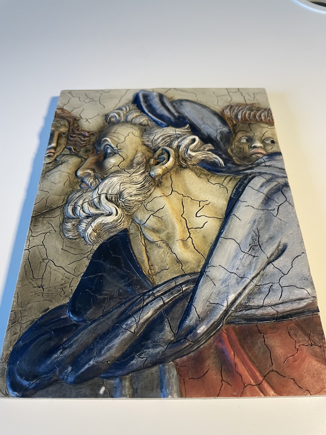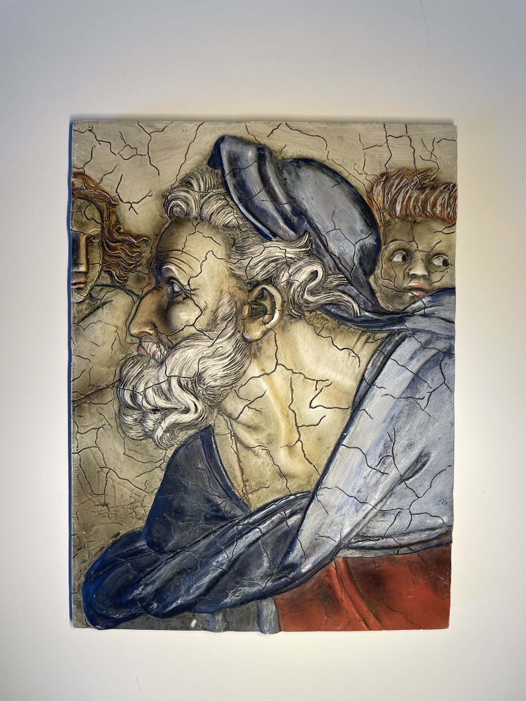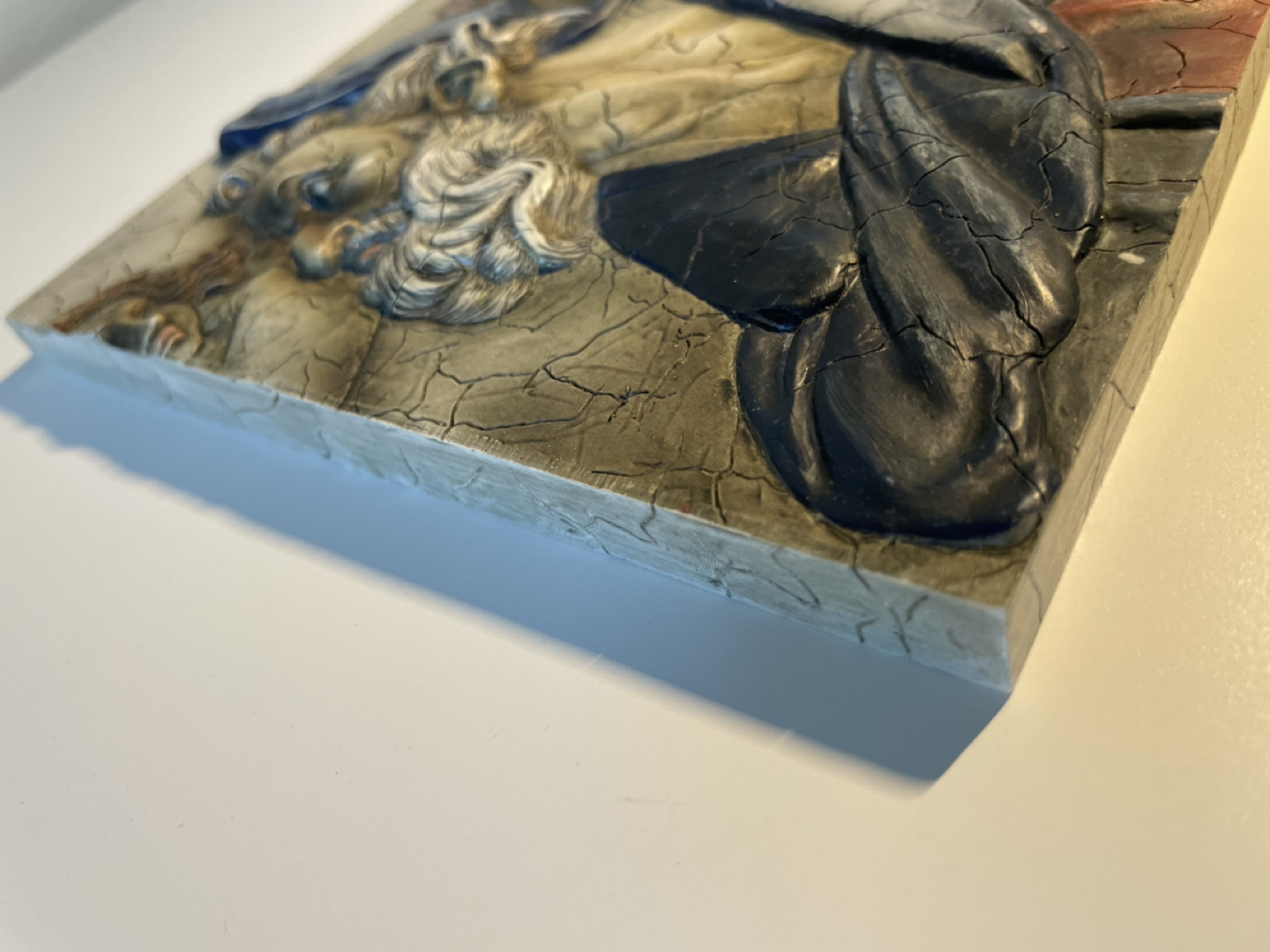 459Hand-painted on solid cast stone slab With 3D detail of iconic Renaissance era art Material: Cast Stone ***Please see all photos and zoom in as they are part of the description. Please keep in mind, "vintage" is not new. My items have been pre-loved and may have signs of use.