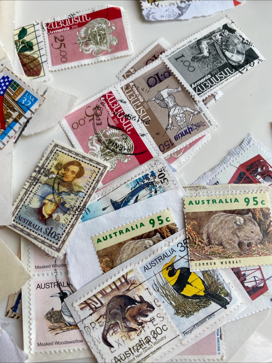 Selling a collection of vintage stamps! Lots of different stamps from around the world, including some older and unique ones. Great for collectors or anyone interested in philately