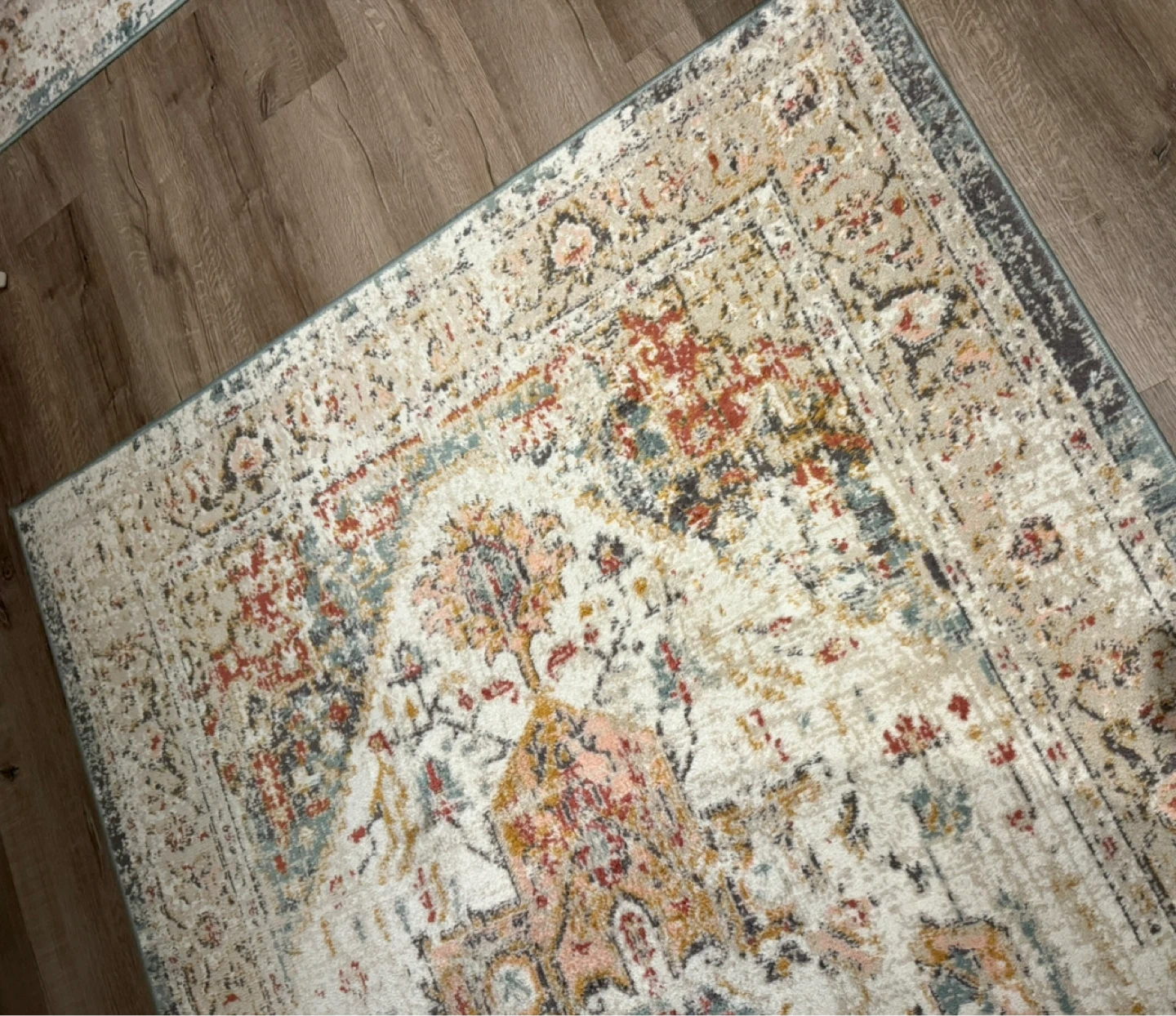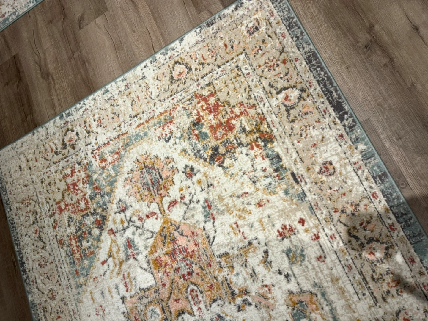 Selling a vintage style area rug. It features a detailed pattern with neutral and colourful accents. Perfect for adding a touch of elegance to any room! One is 5 x7 and the second one is 8x 12 roughly. There is some wear around the end but not noticeable. Selling both for 60.