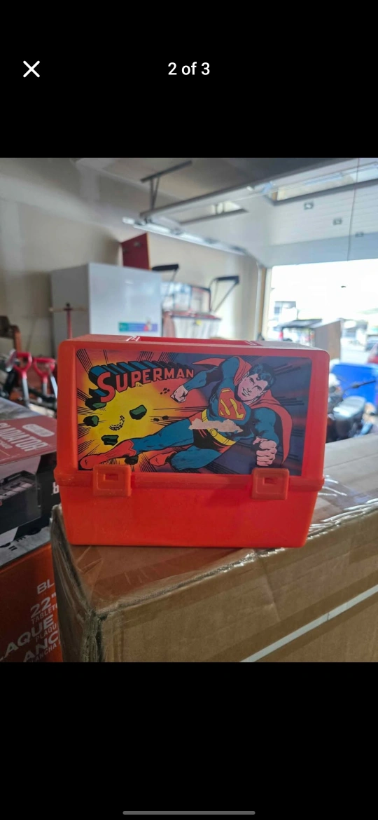 Selling a vintage Superman lunchbox! It has a classic design featuring the Man of Steel himself. Perfect for collectors or anyone who loves a bit of nostalgia