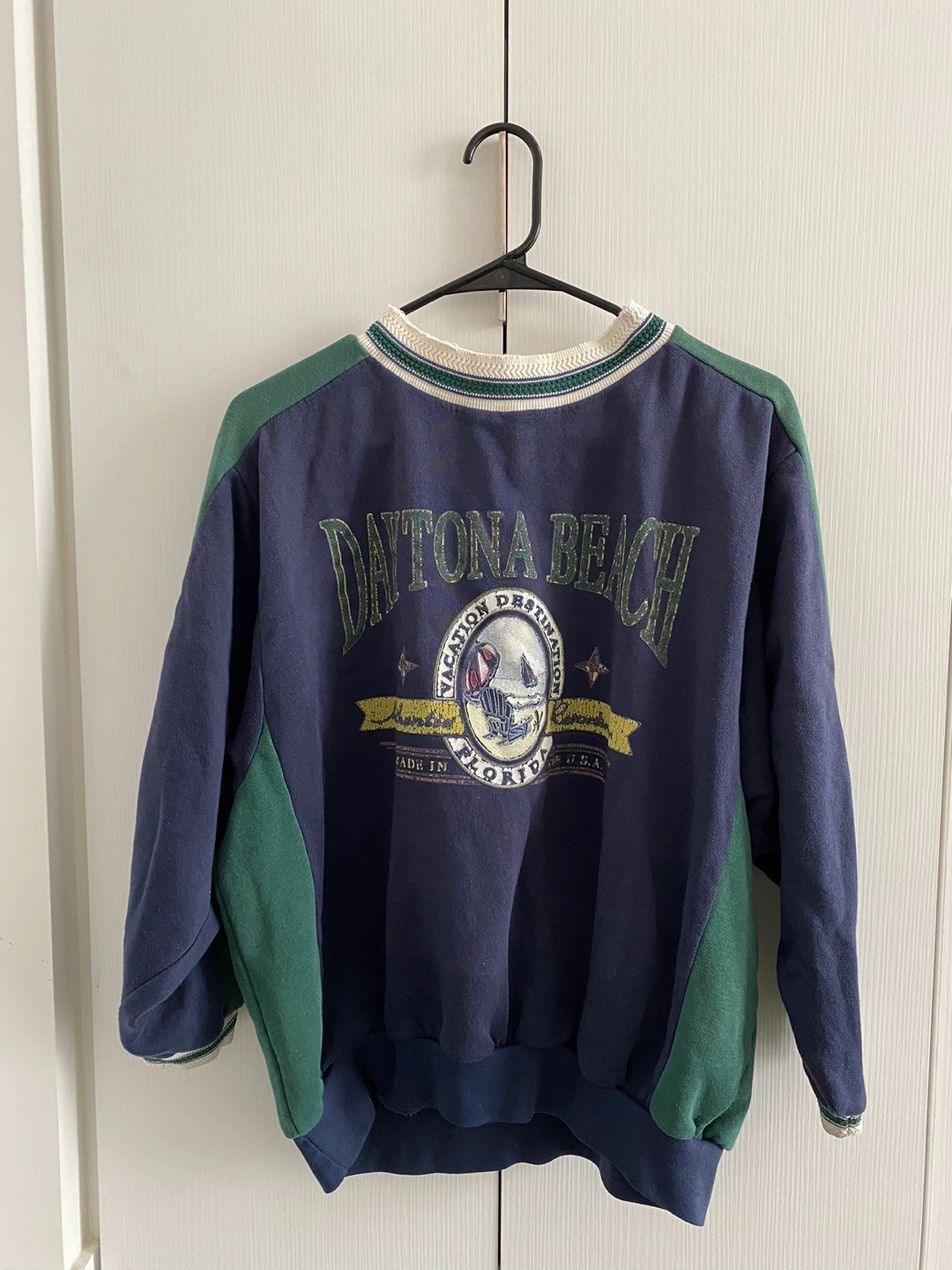 Vintage crewneck sweatshirt Has neckline and sleeve rim details Fits an oversized M