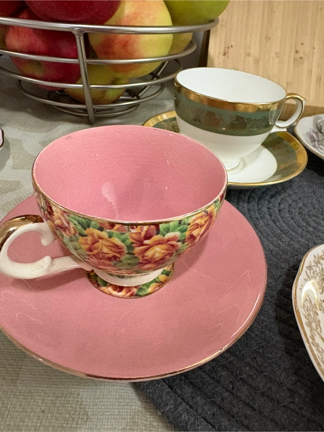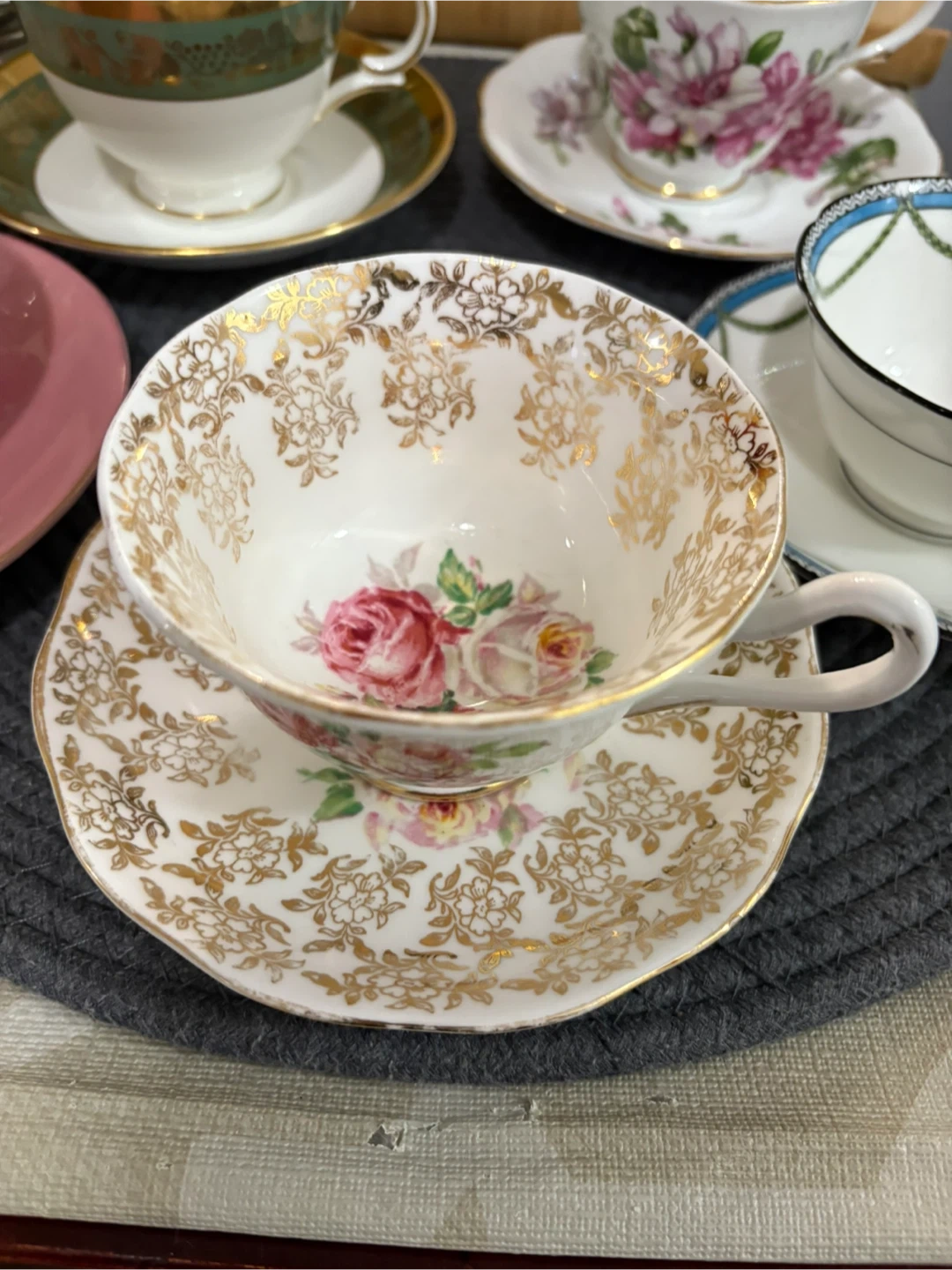 Selling a collection of vintage teacups and saucers! They each have unique floral patterns and gold trim. Perfect for adding a touch of elegance to your tea time or as a decorative piece for your home. $10 each one