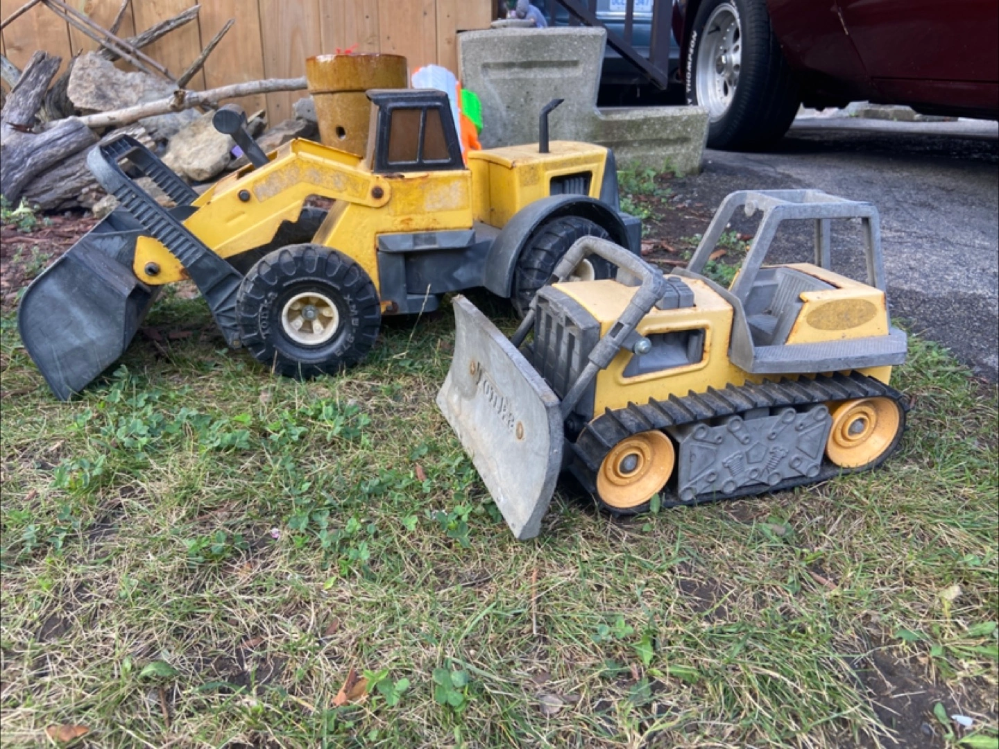 Selling a pair of Tonka toy trucks! There's a loader and a bulldozer, both in good shape, other than usual aging. $25 each!
