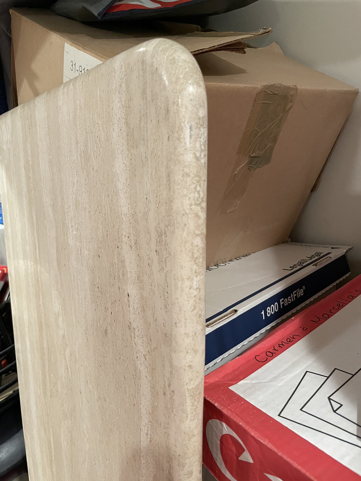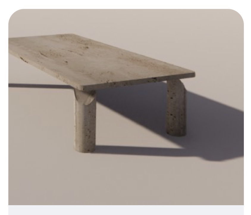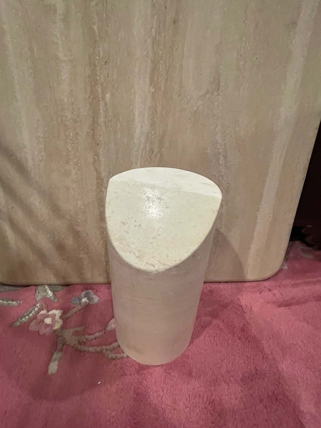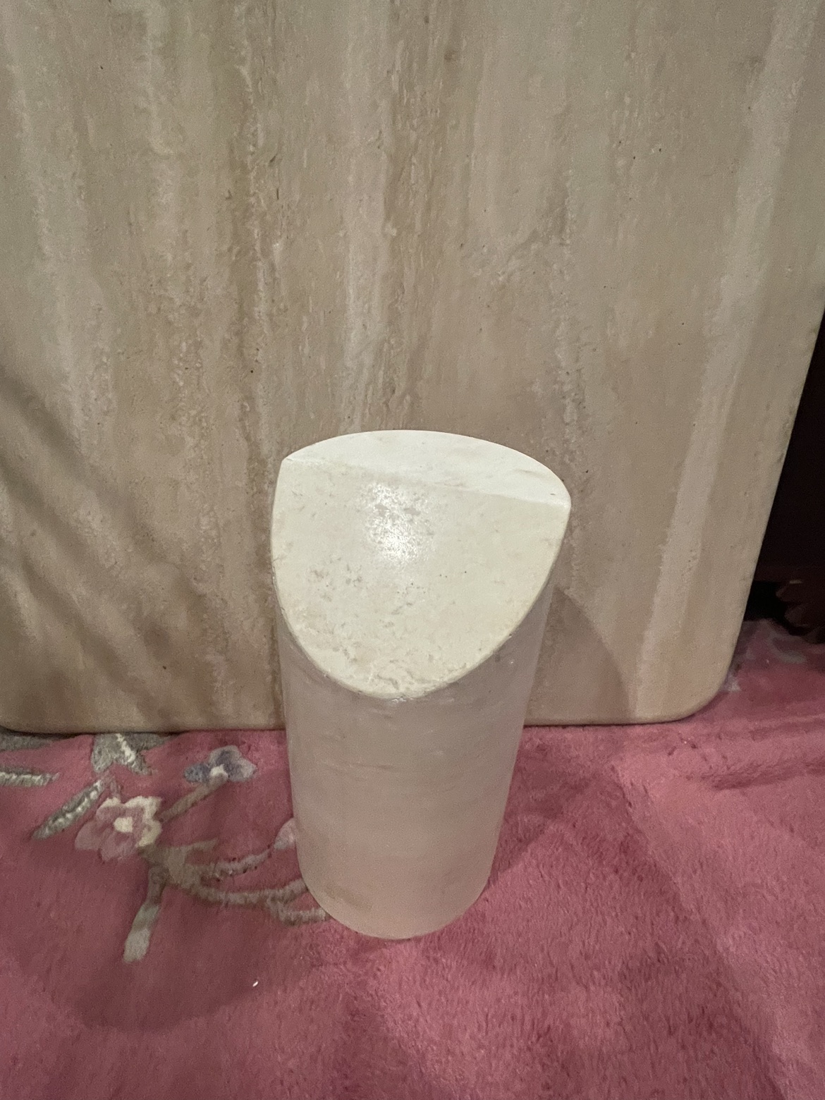 38Beautiful large vintage travertine coffee table, it is in very good condition and is roughly 27"wx54”Lx12”h. Stone is about 1” thick. Beautiful natural stone - no chips or cracks with four solid travertine cyndrylical bases. I included a rendering as it’s too heavy to display on my own at the moment. Pickup only at John and Leslie in Thornhill