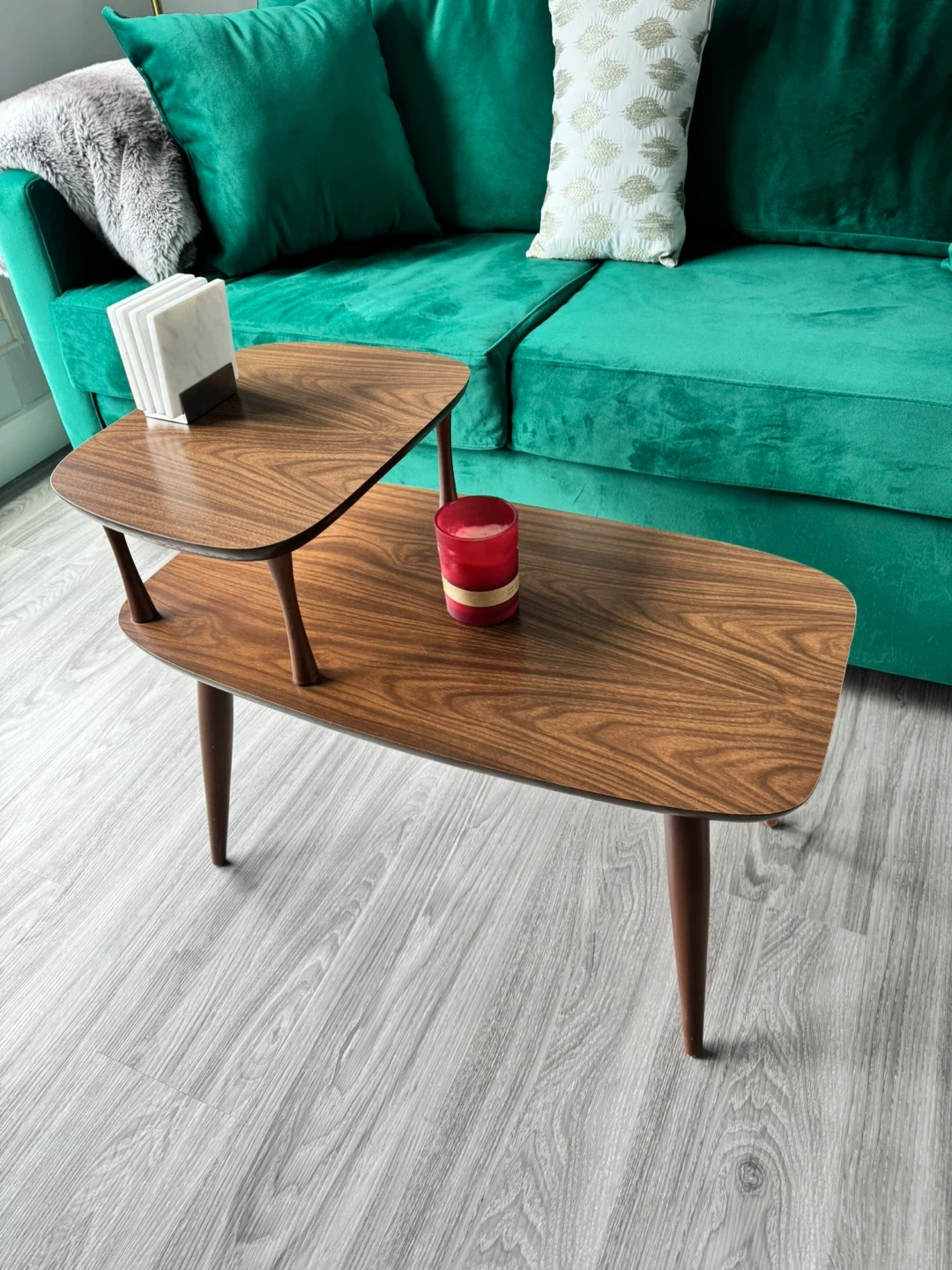 Dark Grey Sofa and Oval Coffee Table