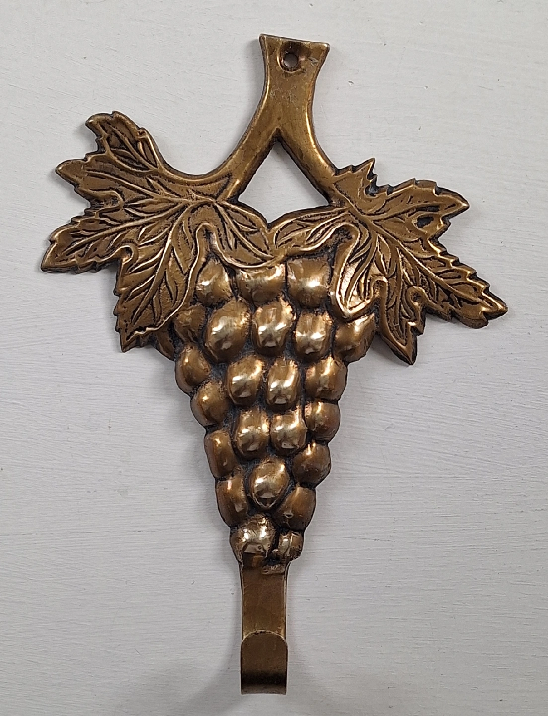This is a charming brass wall hook featuring a grape design. It's marked as "Made in India" Perfect for adding a touch of rustic elegance to your home decor