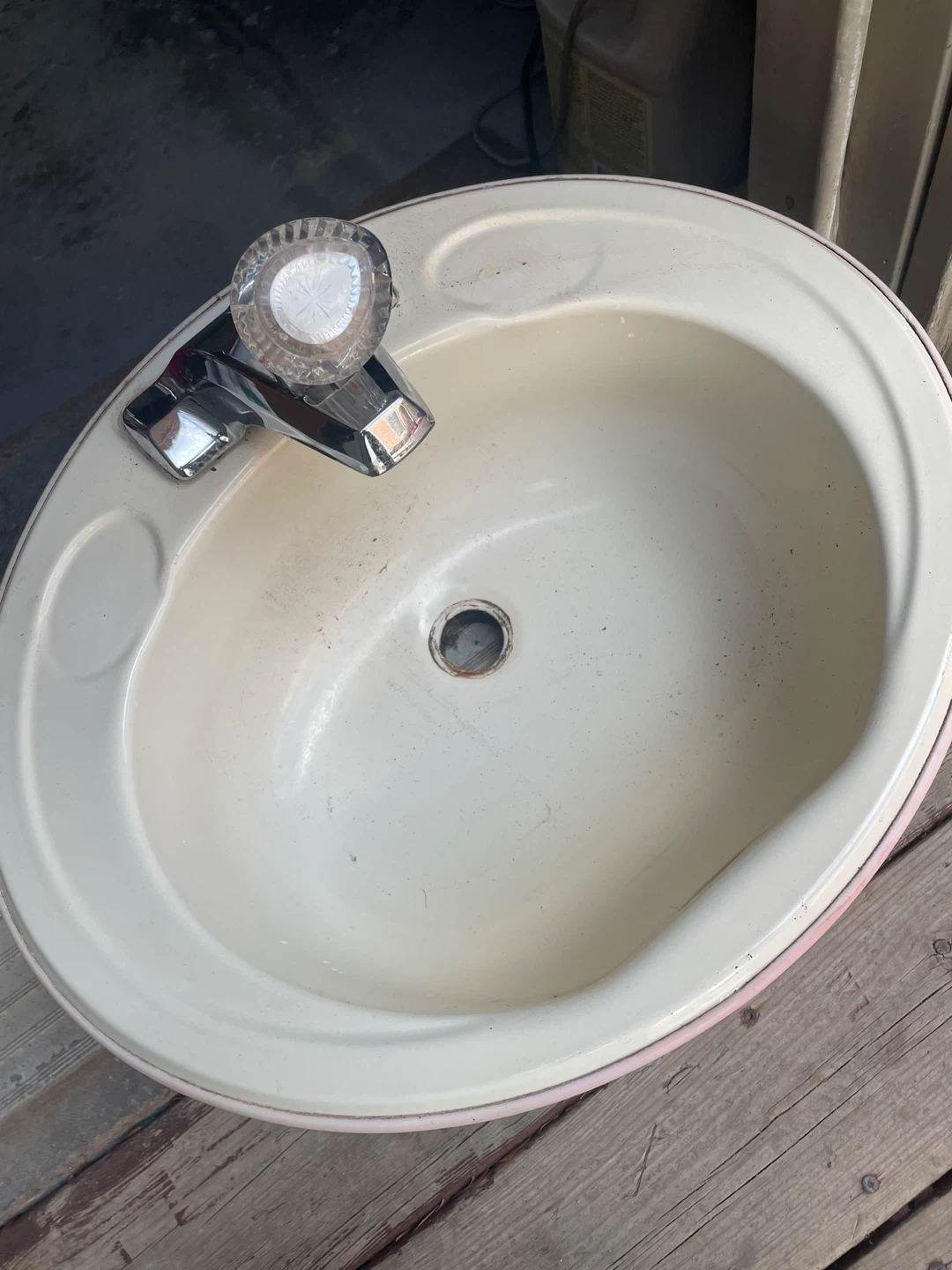143Selling a vintage white sink with a faucet. It has a classic look and could be a great addition to a renovation project or for a unique touch in your bathroom or utility area. It shows some signs of use, but is still in good condition