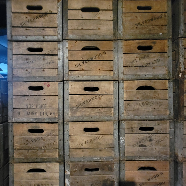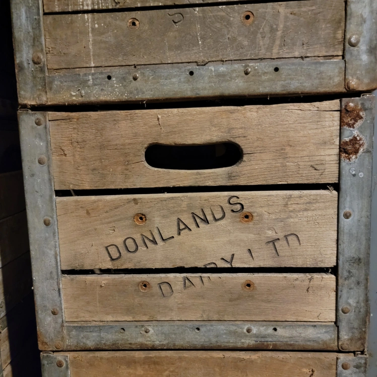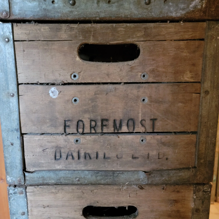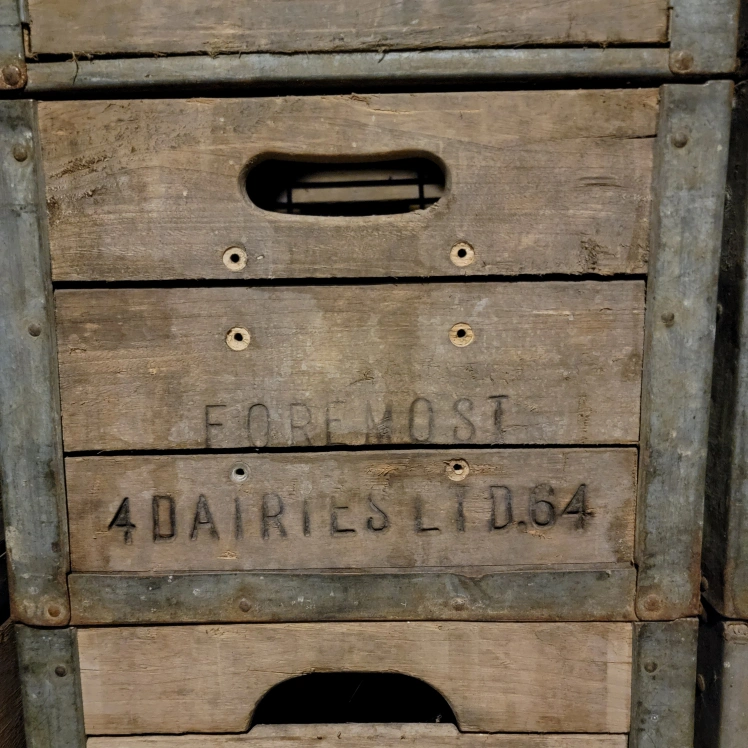 I have a variety of vintage wooden dairy crates for sale! They're perfect for adding a rustic touch to your home decor or for use in storage. Some of the brands include Silverwood's, Donlands, Foremost, and Campbell's Dairy Ltd. They have a great worn look!