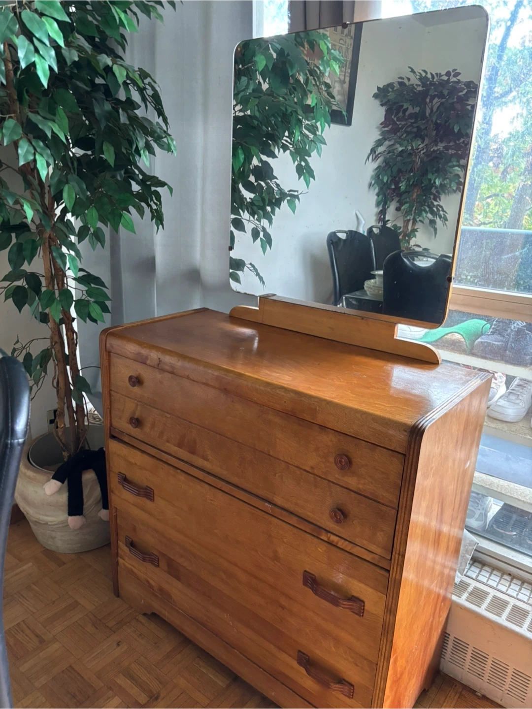 92Vintage Wooden Dresser with Detachable Mirror Beautiful solid wood dresser with a detachable mirror, includes 3 spacious drawers Mirror can be detached. Mirror dimensions: 26β x 26β Dresser dimensions: 35.5β x 33.5β Pickup only. Will need 2 people to move. π Bayview x Finch
