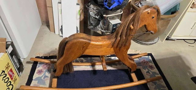 109Saddle up for adventure with this charming, used wooden rocking horse, perfect for little buckaroos! This classic toy features a sturdy wooden construction and a beautiful design, promising hours of imaginative play. It's in good condition, ready to bring joy to a new home. While my trusty steed here isn't winning any races these days, it's still got plenty of giddy-up left! Don't miss out on giving this rocking horse a new pasture. If the ad's up, the horse is ready to ride!