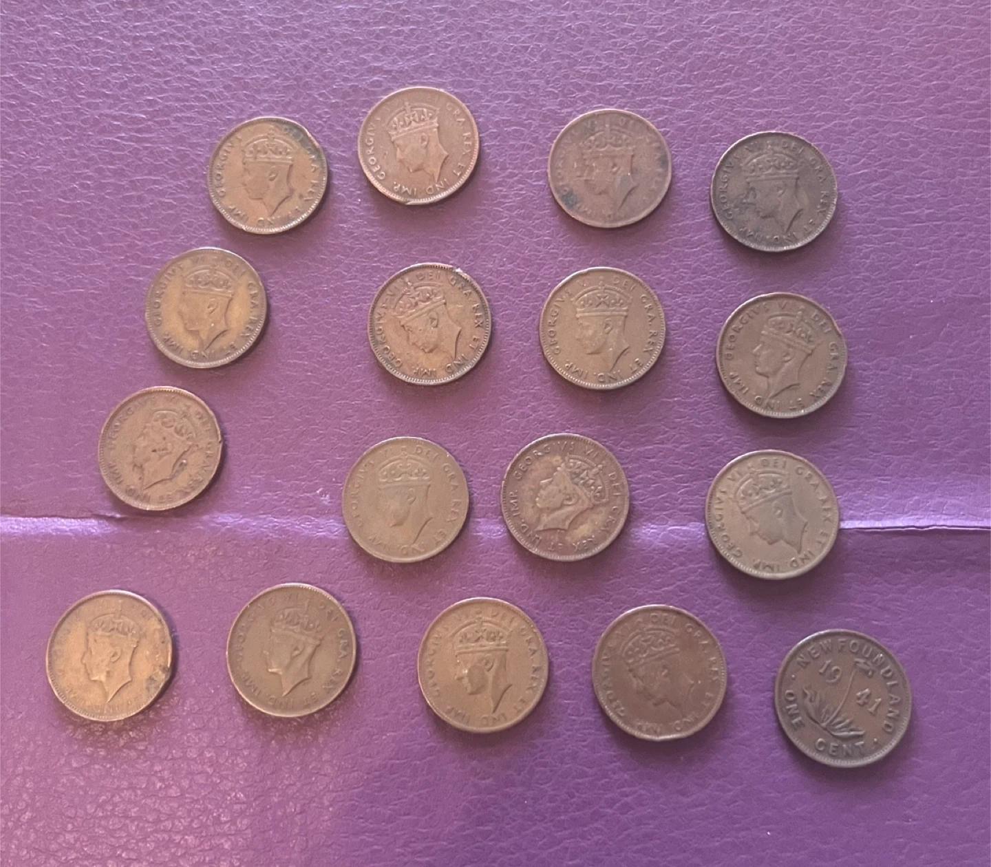 Vintage WW-2 Newfoundland below Cent Coins (1941-1943)