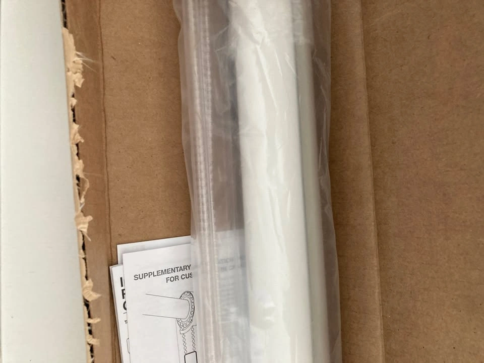 Never-been-used vinyl blackout roller shades for sale. Ideal for a glass door. Colour: oat. Dimensions: Height: 85 inches Width: 37 inches Features: Mount Type-Inside | Roll Position-Standard Roll | Lift Styles-Chain Guard | Lift Cord Location-Right | Headrails-Exposed Roll | Headrail Option-Standard Headrail