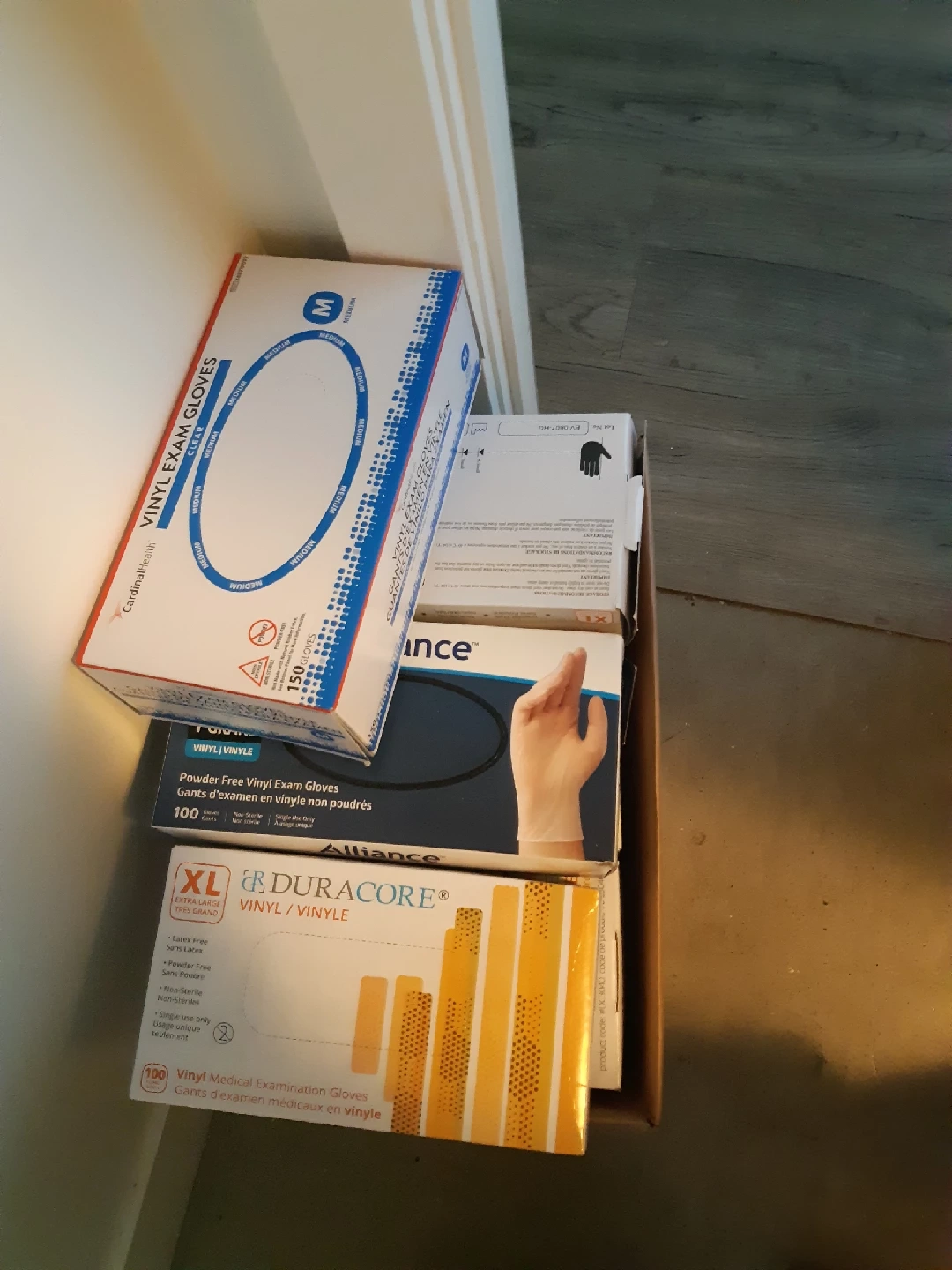 Selling a variety of vinyl exam gloves. There are boxes of Cardinal Health and Alliance Duracore brands. Sizes XL. Great for various uses! $7 each or $5 each bundle price