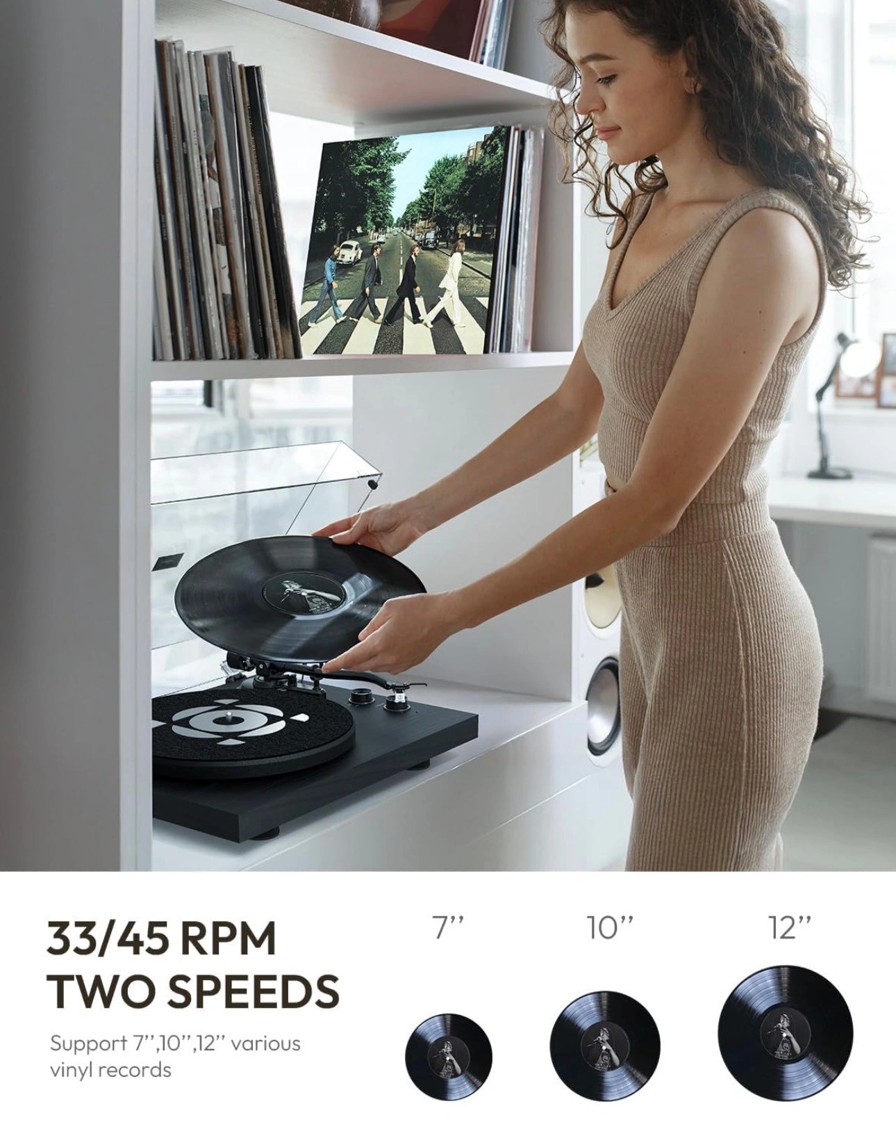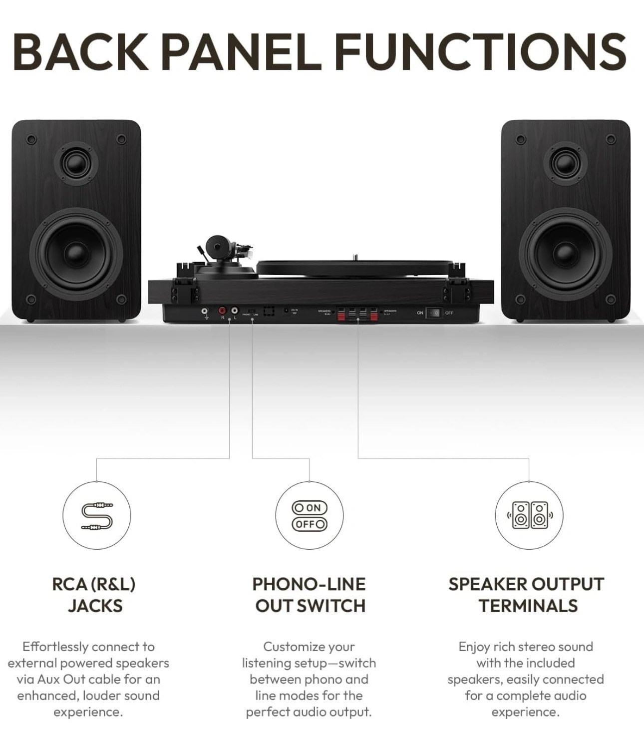 65SoulBox S1 Vinyl Record Player with Stereo Speakers, Turntable with Built-in Preamp, S-Shaped Tonearm, 33/45 RPM (Black) NOTE: New in box Premium Audiophile System: The SoulBox S1 pairs powerful stereo bookshelf speakers with streaming tech and a built-in switchable phono preamp. Play your favorite vinyl records or stream music from your smart devices—an entry-level audiophile system designed for ultimate versatility. Rich & Dynamic Sound: Experience true analog sound with a 25mm silk dome tweeter for crystal-clear highs, a 130mm fiberglass cone for warm mids, and a tight, punchy bass. Balanced by Qlearsoul’s advanced crossover technology, every note is delivered with precision and warmth. Innovative S-Shaped Tonearm: The 10-inch S-shaped tonearm features an adjustable counterweight and an all-new anti-skating knob. Paired with the high-performance AT-3600L cartridge, it ensures precise stylus tracking, minimizing skips and delivering distortion-free playback. Precision Speed & Stability: Featuring a next-generation DC motor, a belt-driven system, and a 1.2kg die-cast iron platter, the SoulBox S1 ensures flawless speed control at 33/45 RPM. Its precision electronic speed generator guarantees steady, reliable playback for every record. Perfect for Every Vinyl Lover: Whether you're a beginner, a seasoned collector, or rediscovering your love for vinyl, the SoulBox S1 offers premium materials, timeless aesthetics, and vibrant sound quality. All this, without compromising on affordability.