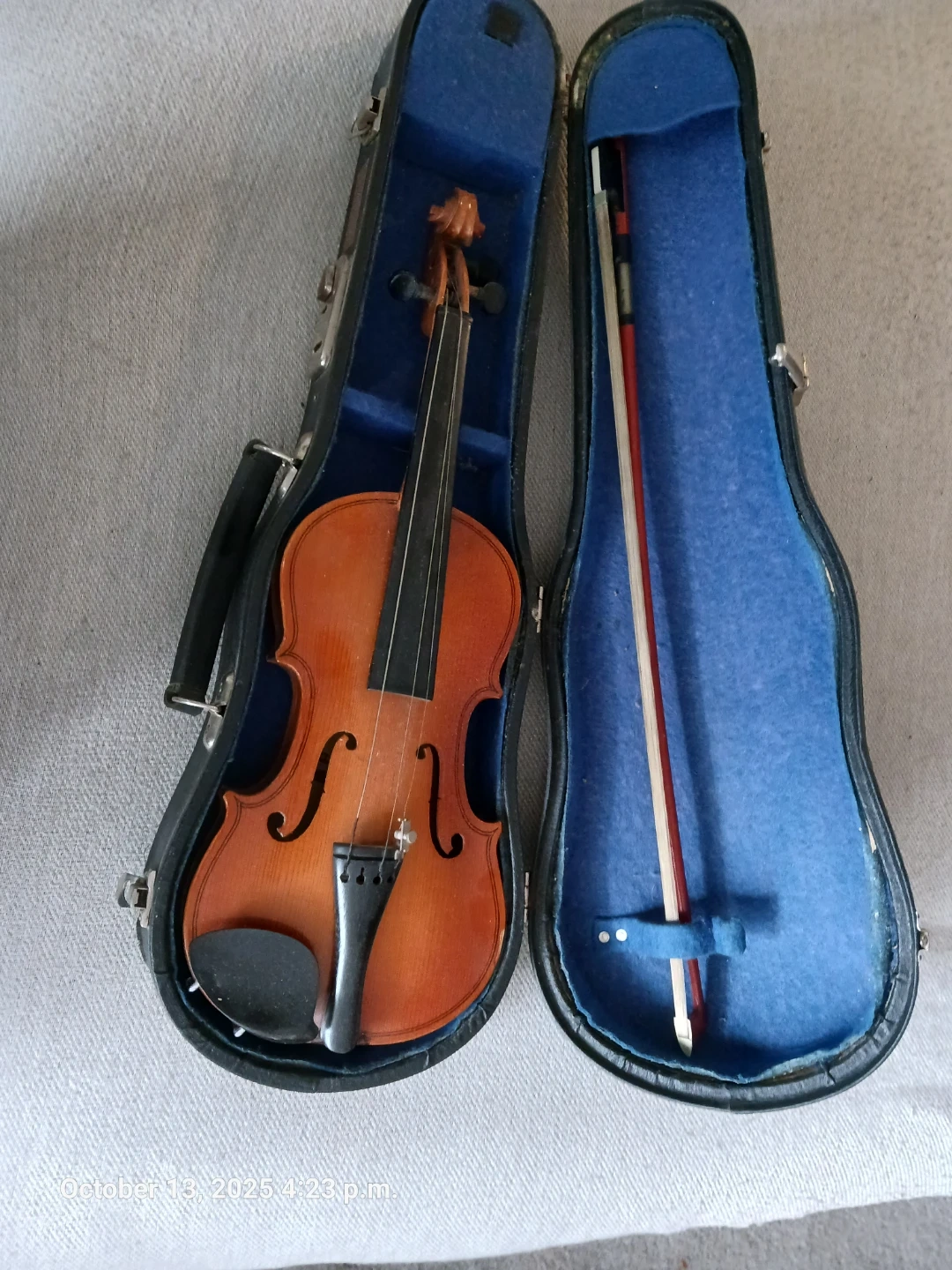 97AS IS: Selling a violin, complete with its case and bow! This is a none playable violin ment more as a decorative piece to display. Also great for collectors. $40.00 Again this is non playable and Selling as is.